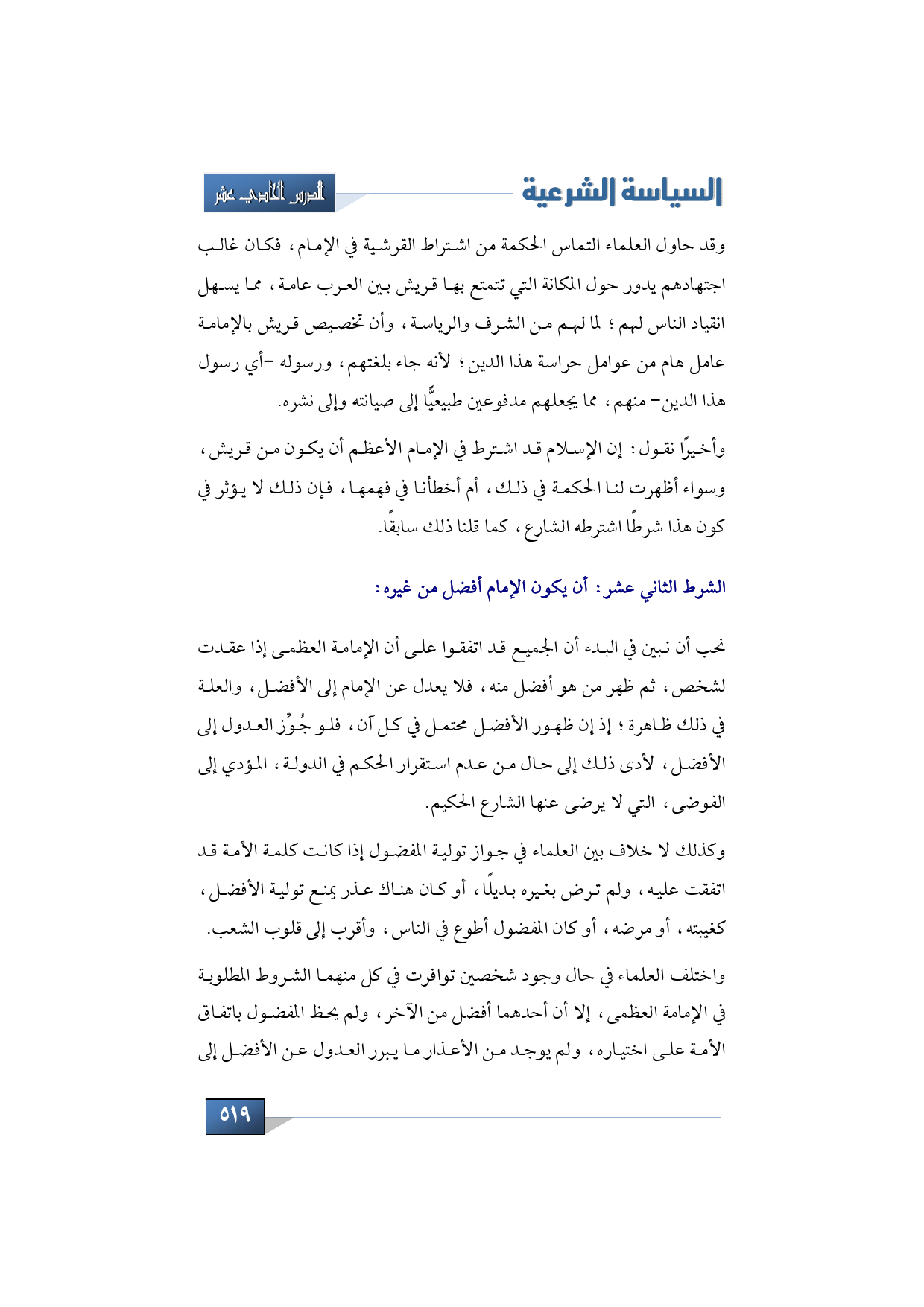 ثم نتحدث الآن عن الشرط الآخر, الذي وعدنا بالحديث عنه, وهو أن يكون الإمام أفضل من غيره فنقول: