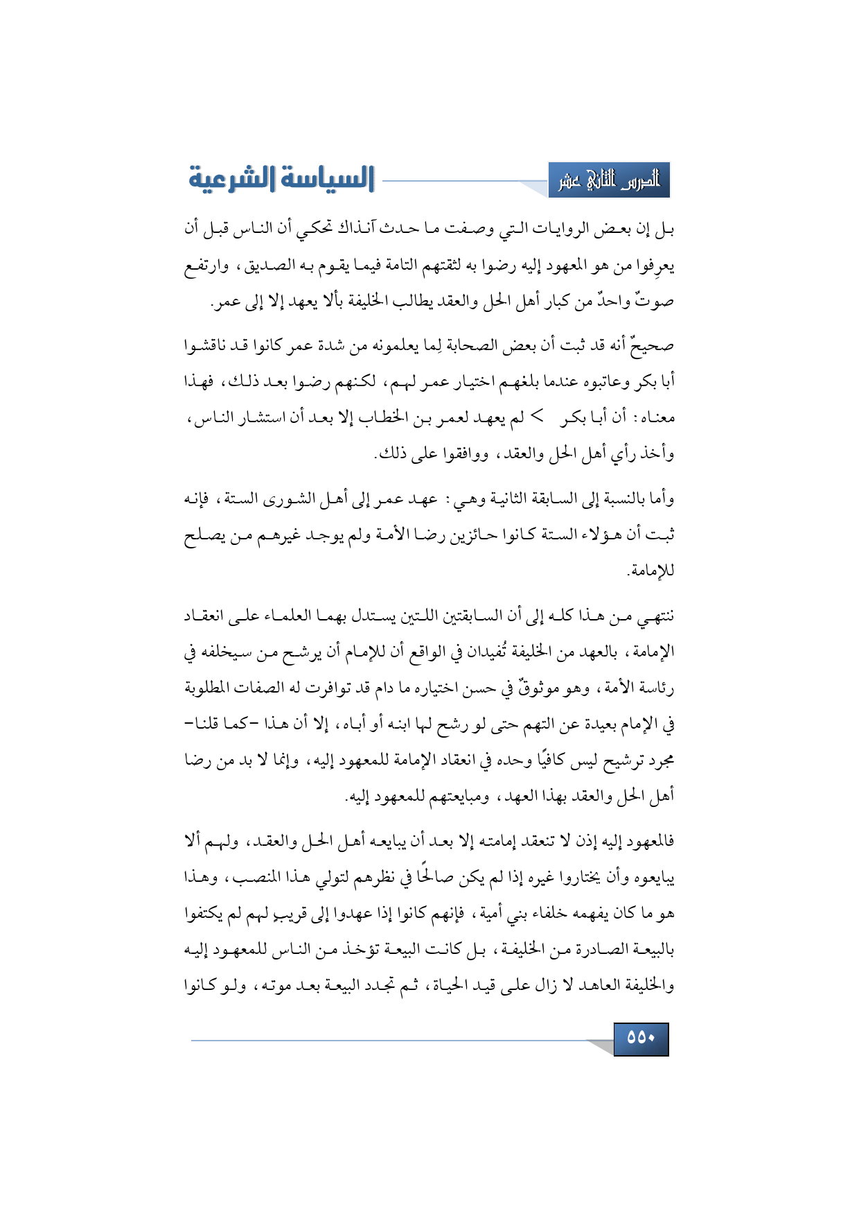 ننتهي من هذا كله إلى أن السابقتين اللتين يستدل بهما العلماء على انعقاد الإمامة، بالعهد من الخليفة تُفيدان في الواقع أن للإمام أن يرشح من سيخلفه في رئاسة الأمة، وهو موثوقٌ في حسن اختياره ما دام قد توافرت له الصفات المطلوبة في الإمام بعيدة عن التهم حتى لو رشح لها ابنه أو أباه، إلا أن هذا -كما قلنا- مجرد ترشيح ليس كافيًا وحده في انعقاد الإمامة للمعهود إليه، وإنما لا بد من رضا أهل الحل والعقد بهذا العهد، ومبايعتهم للمعهود إليه، فالمعهود إليه إذن لا تنعقد إمامته إلا بعد أن يبايعه أهل الحل والعقد، ولهم ألا يبايعوه وأن يختاروا غيره إذا لم يكن صالحًا في نظرهم لتولي هذا المنصب، وهذا هو ما كان يفهمه خلفاء بني أمية، فإنهم كانوا إذا عهدوا إلى قريبٍ لهم لم يكتفوا بالبيعة الصادرة من الخليفة، بل كانت البيعة تؤخذ من الناس للمعهود إليه والخليفة العاهد لا زال على قيد الحياة، ثم تجدد البيعة بعد موته، ولو كانوا