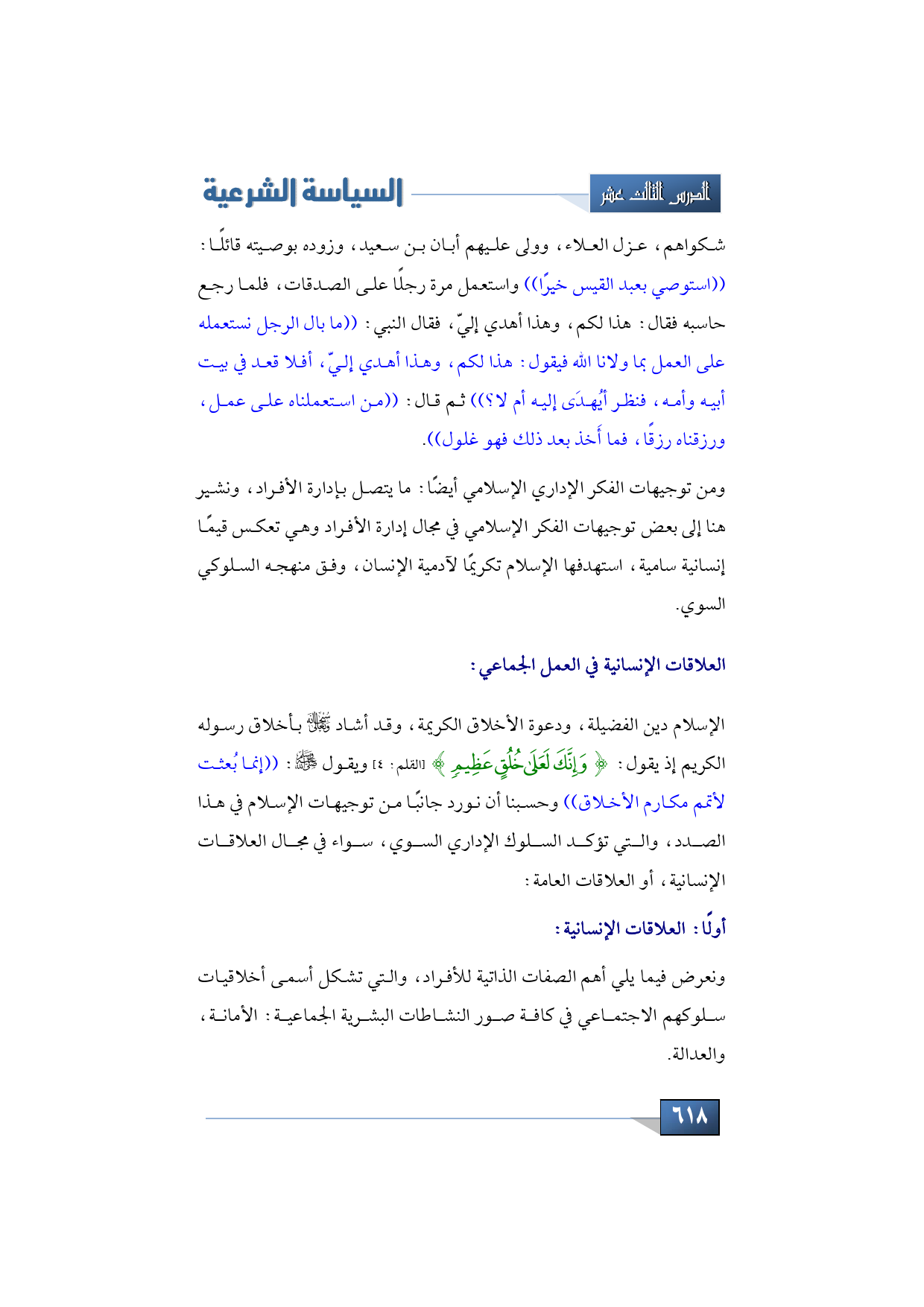 أولًا: العلاقات الإنسانية: