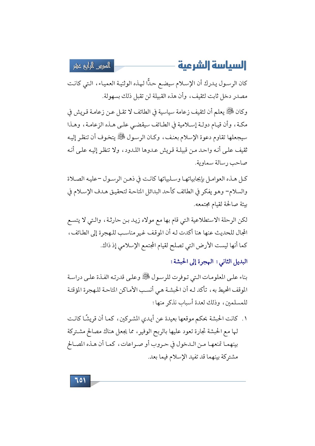 ثم ننتقل الآن للحديث عن البديل الثاني، وهو الهجرة إلى الحبشة: