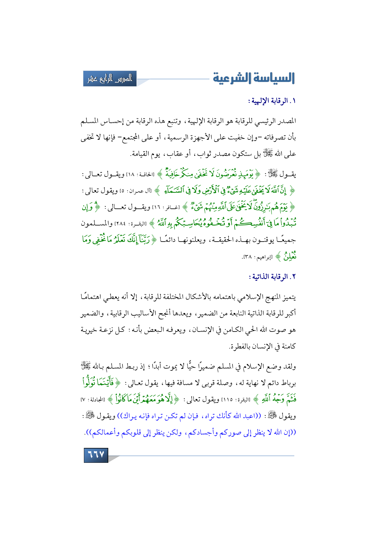 ونتحدث الآن عن الرقابة الإلهية فنقول: