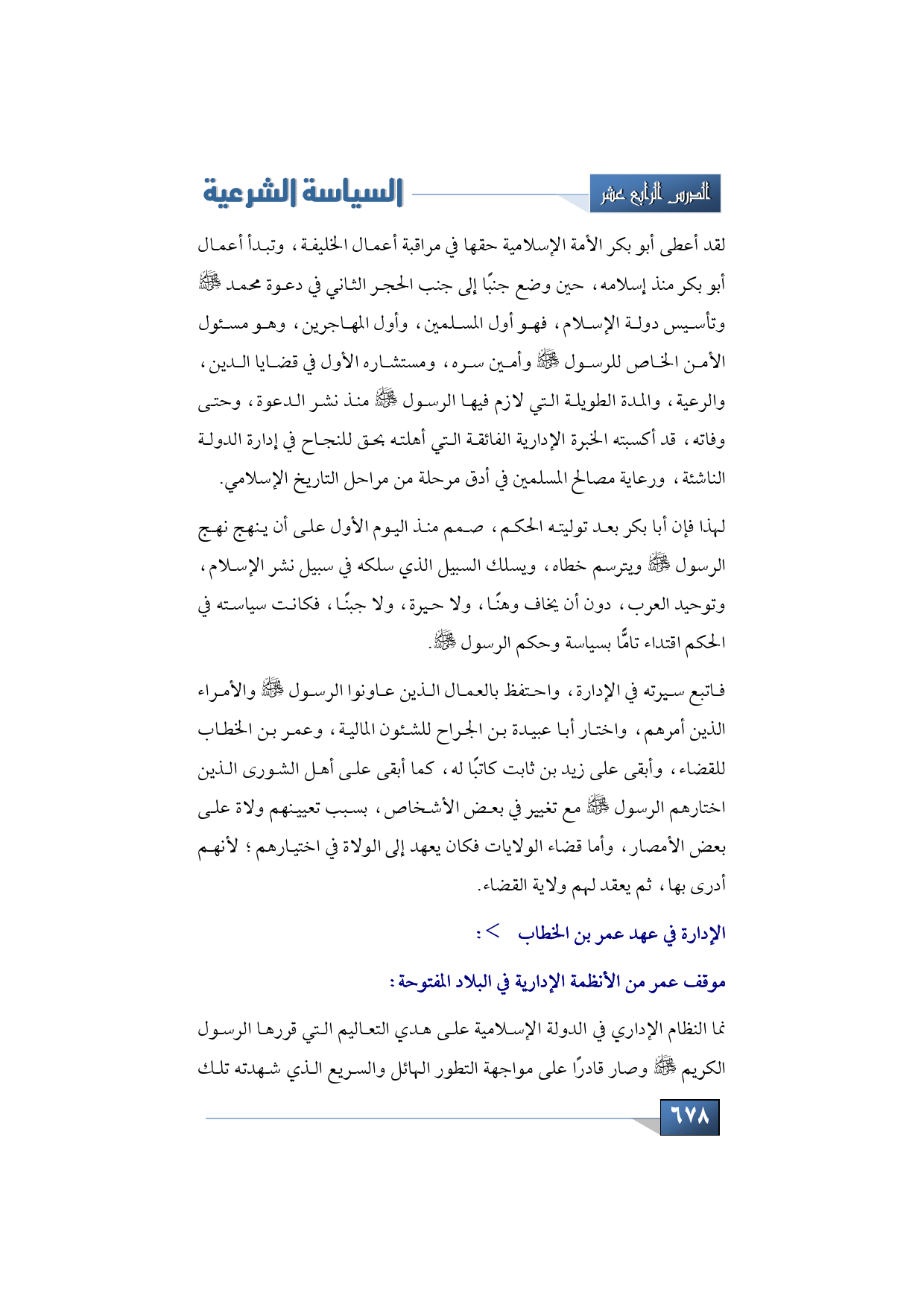 موقف عمر من الأنظمة الإدارية في البلاد المفتوحة