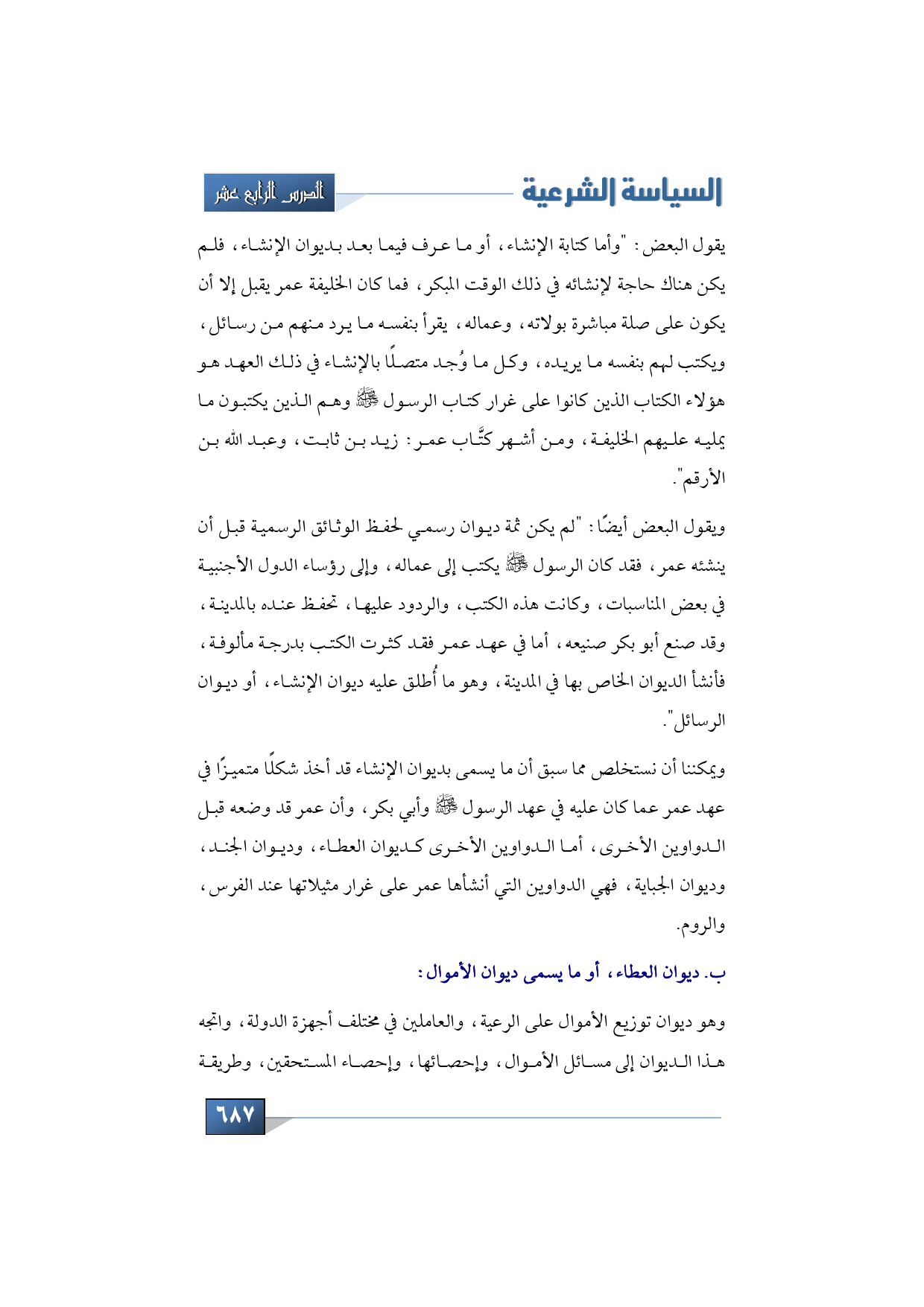 2 - نتحدث الآن عن ديوان العطاء, أو ما يسمى ديوان الأموال: