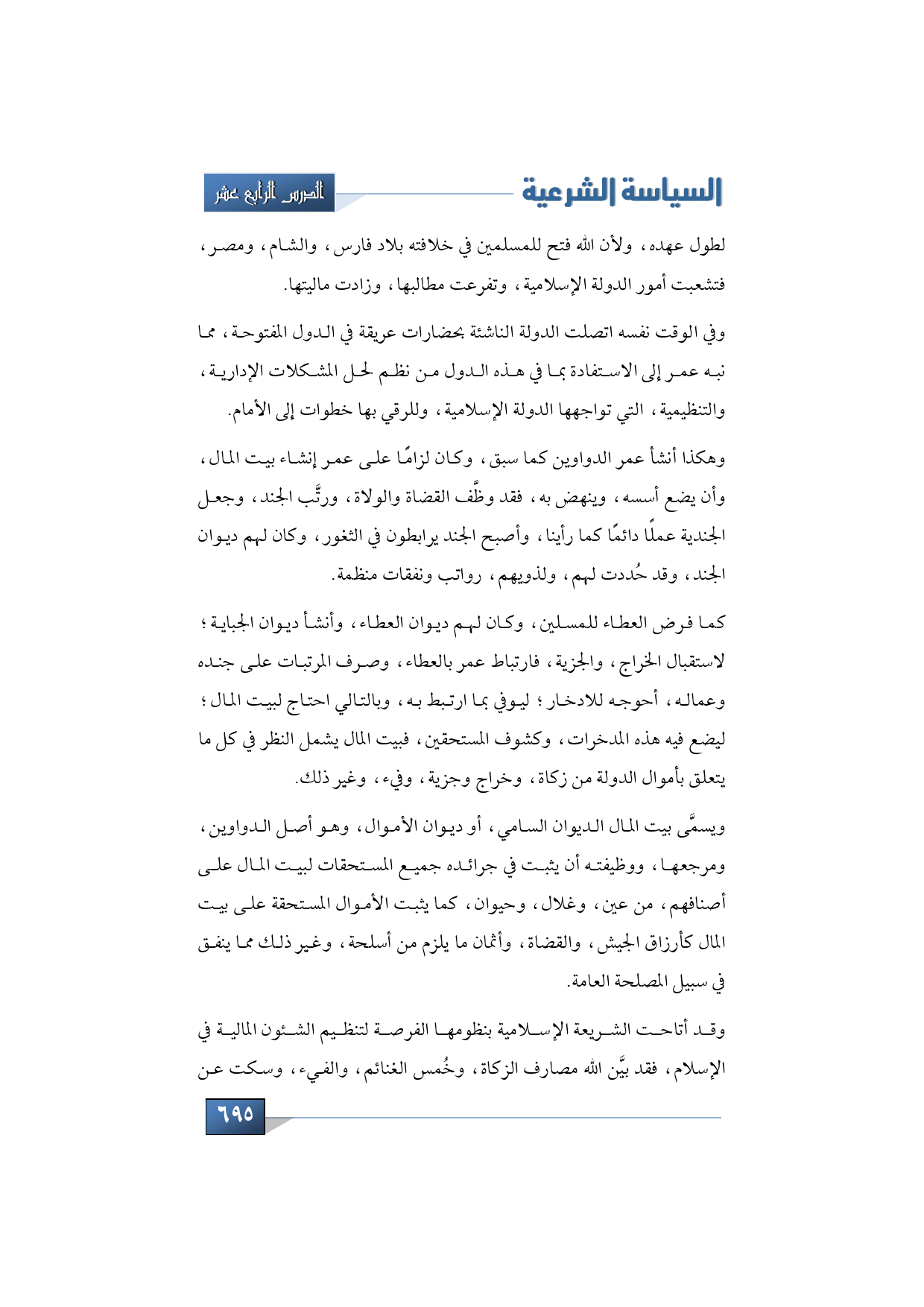 وقد أتاحت الشريعة الإسلامية بنظومها الفرصة لتنظيم الشئون المالية في الإسلام, فقد بيَّن الله مصارف الزكاة, وخُمس الغنائم, والفيء, وسكت عن