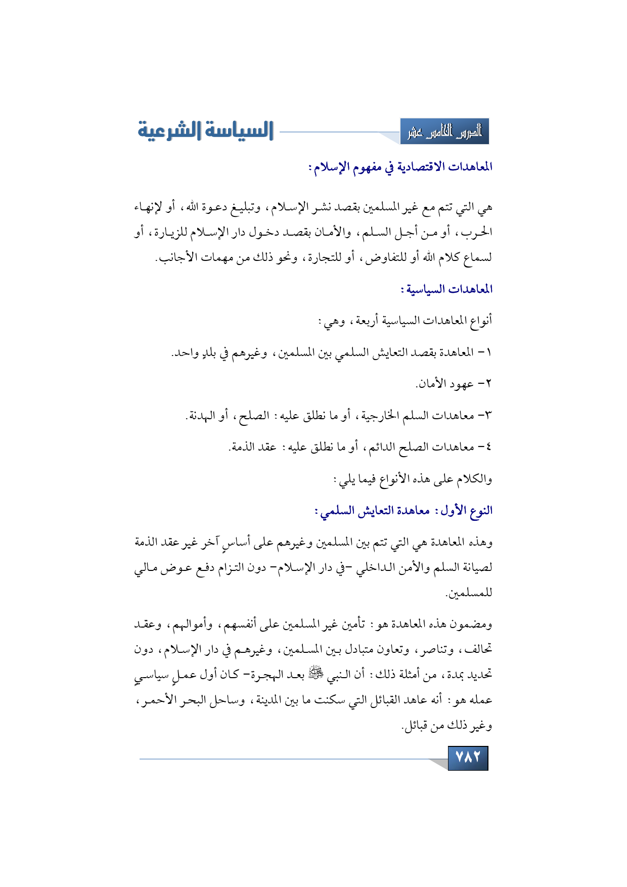 1 - المعاهدة بقصد التعايش السلمي بين المسلمين، وغيرهم في بلدٍ واحد.