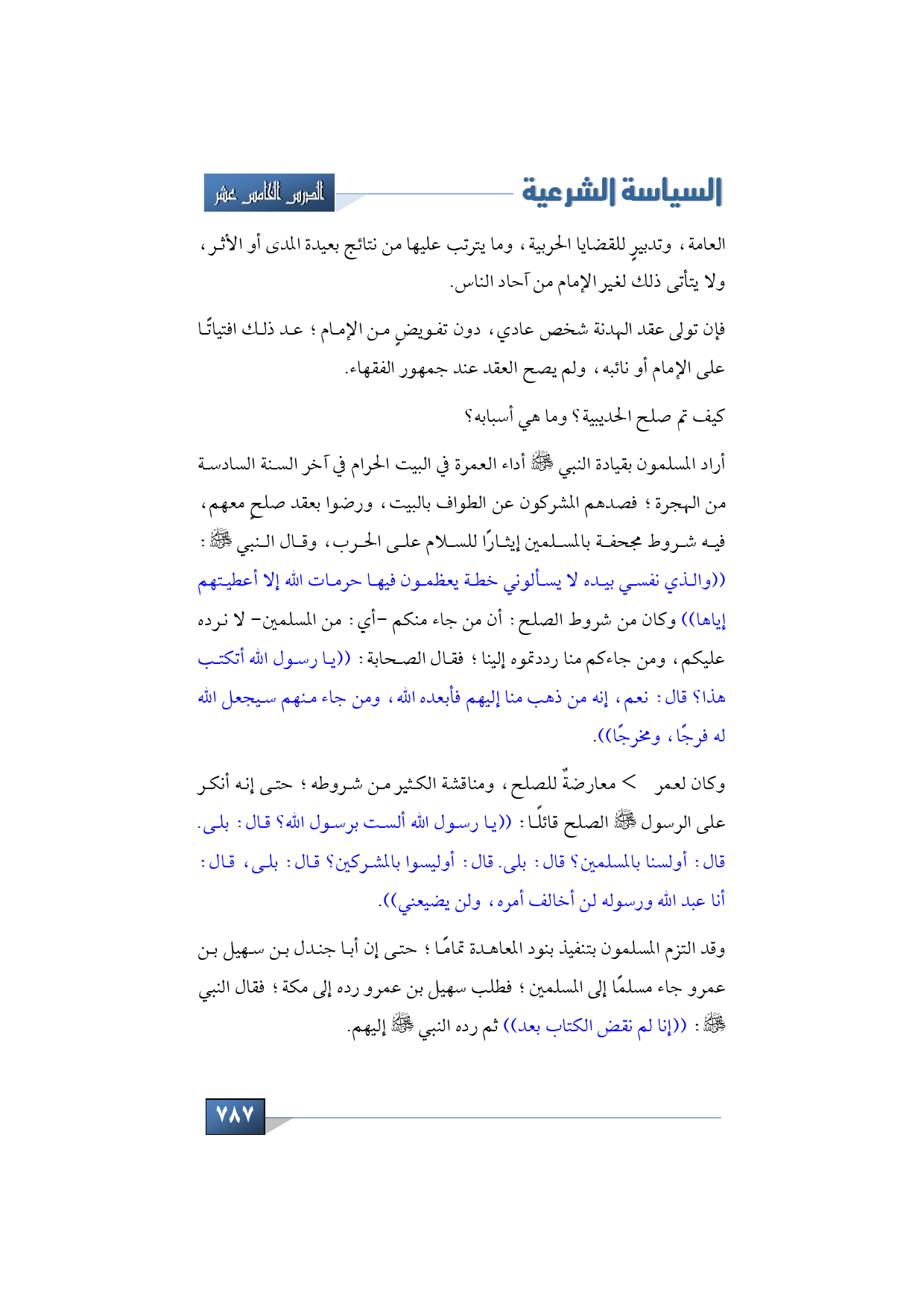 وقد التزم المسلمون بتنفيذ بنود المعاهدة تمامًا؛ حتى إن أبا جندل بن سهيل بن عمر جاء مسلمًا إلى المسلمين؛ فطلب سهيل بن عمر رده إلى مكة؛ فقال النبي -صلى الله عليه وسلم-: ((إنا لم نقض الكتاب بعد)) ثم رده النبي -صلى الله عليه وسلم- إليهم.