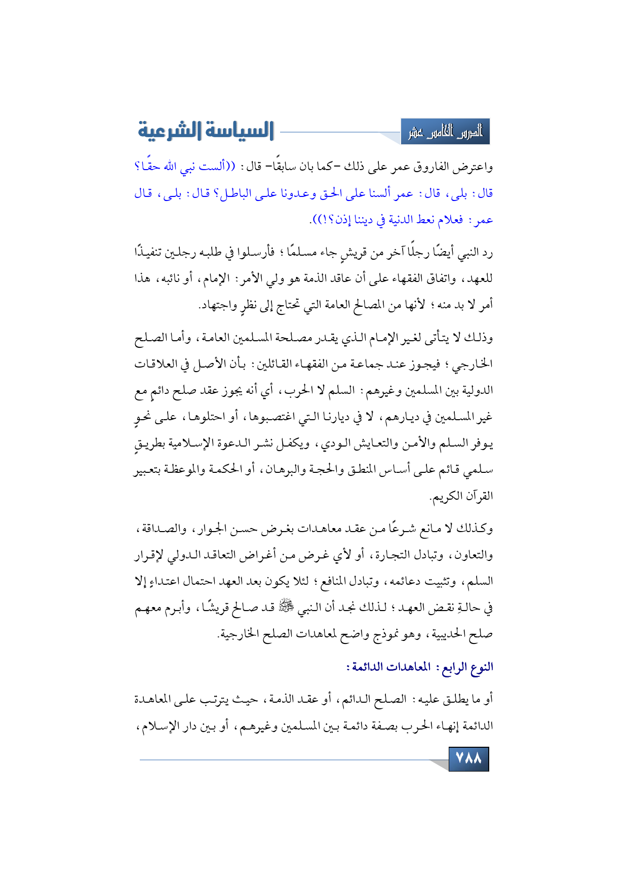 النوع الرابع -من المعاهدات السياسية-: المعاهدات الدائمة، أو ما يطلق عليه: الصلح الدائم، أو عقد الذمة: