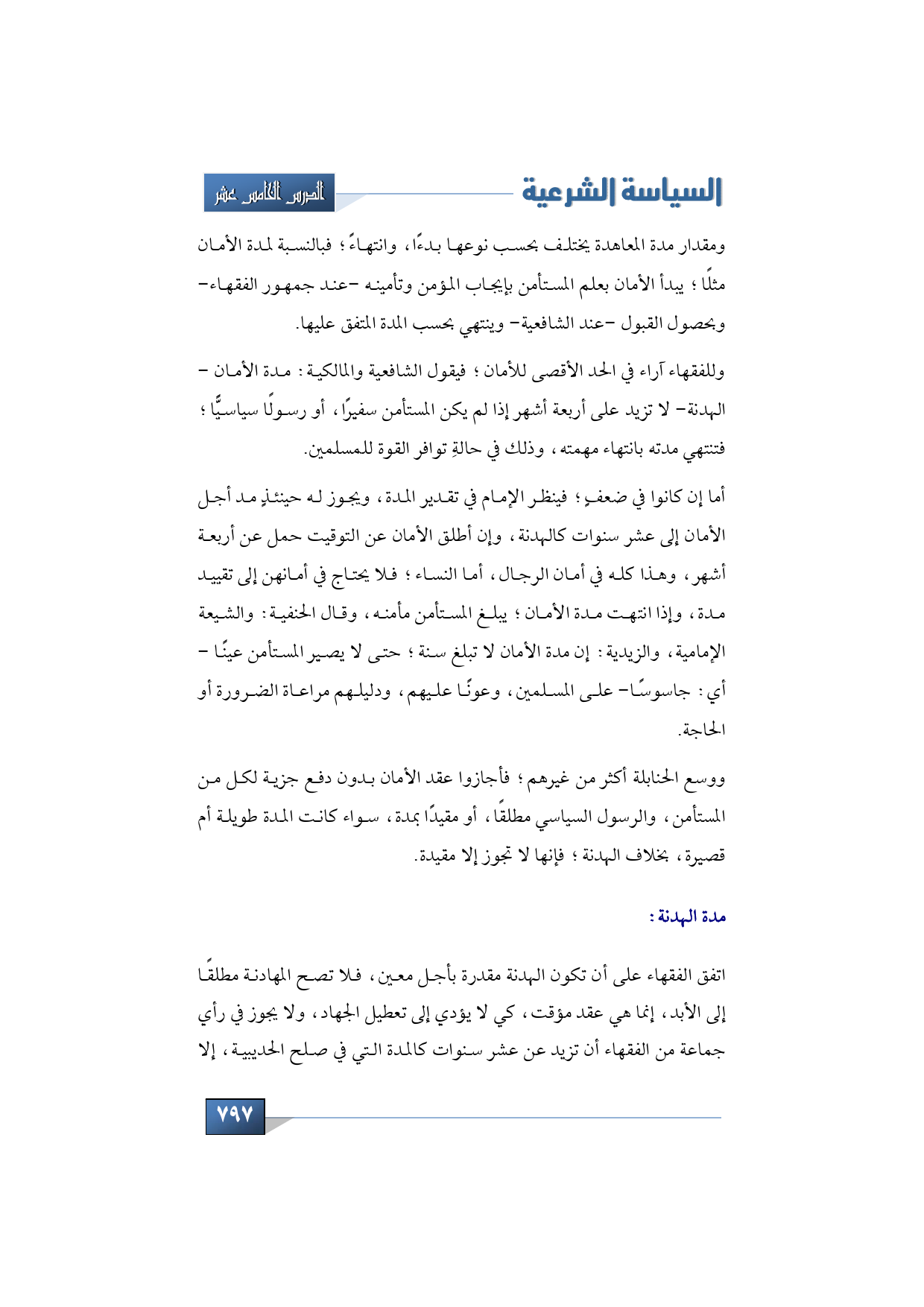 وننتقل إلى مدة الهدنة، تكلمنا عن مدة الأمان، نتكلم الآن عن مدة الهدنة فنقول: