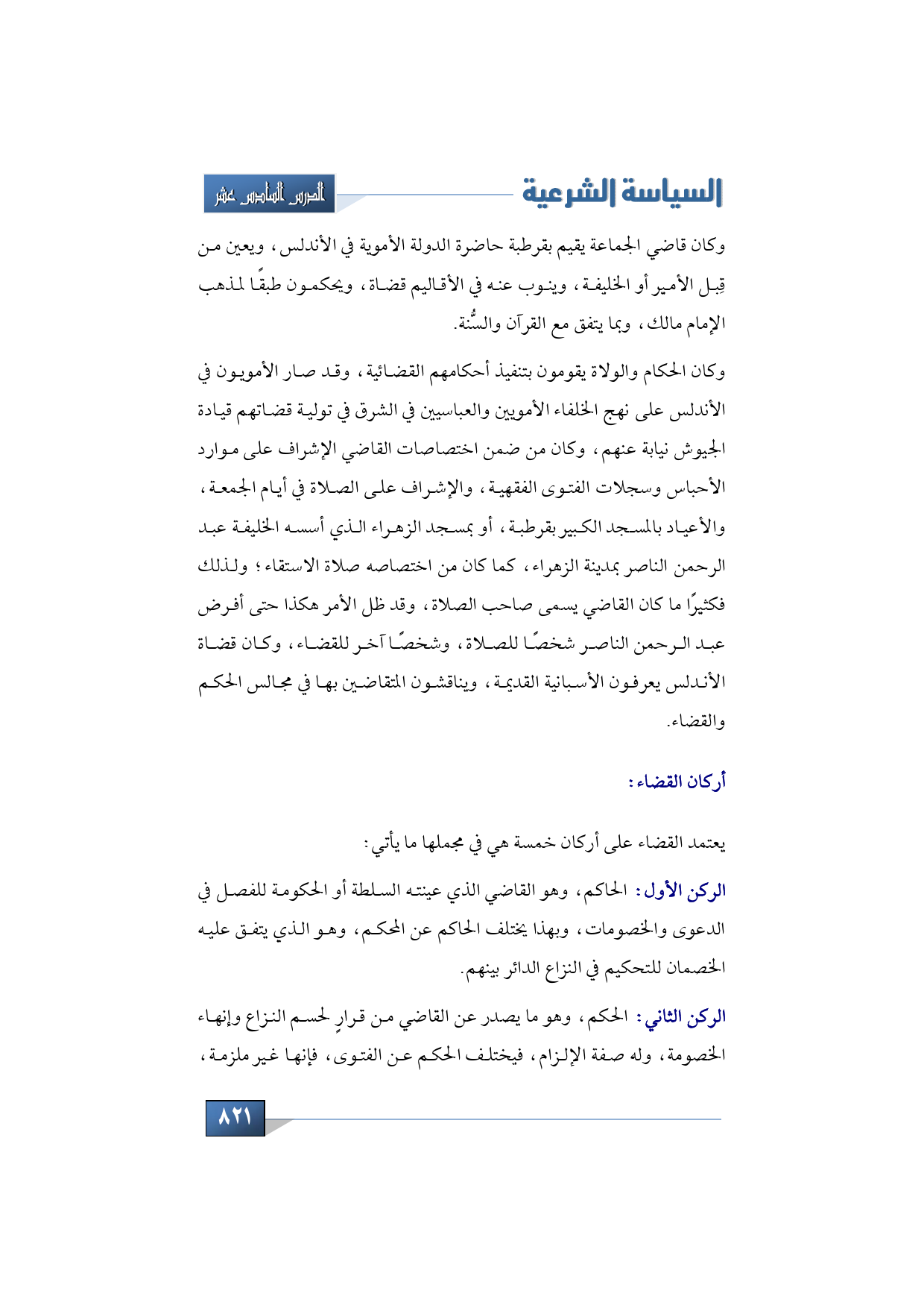 ننتقل الآن إلى موضوع آخر وهو: أركان القضاء فنقول: