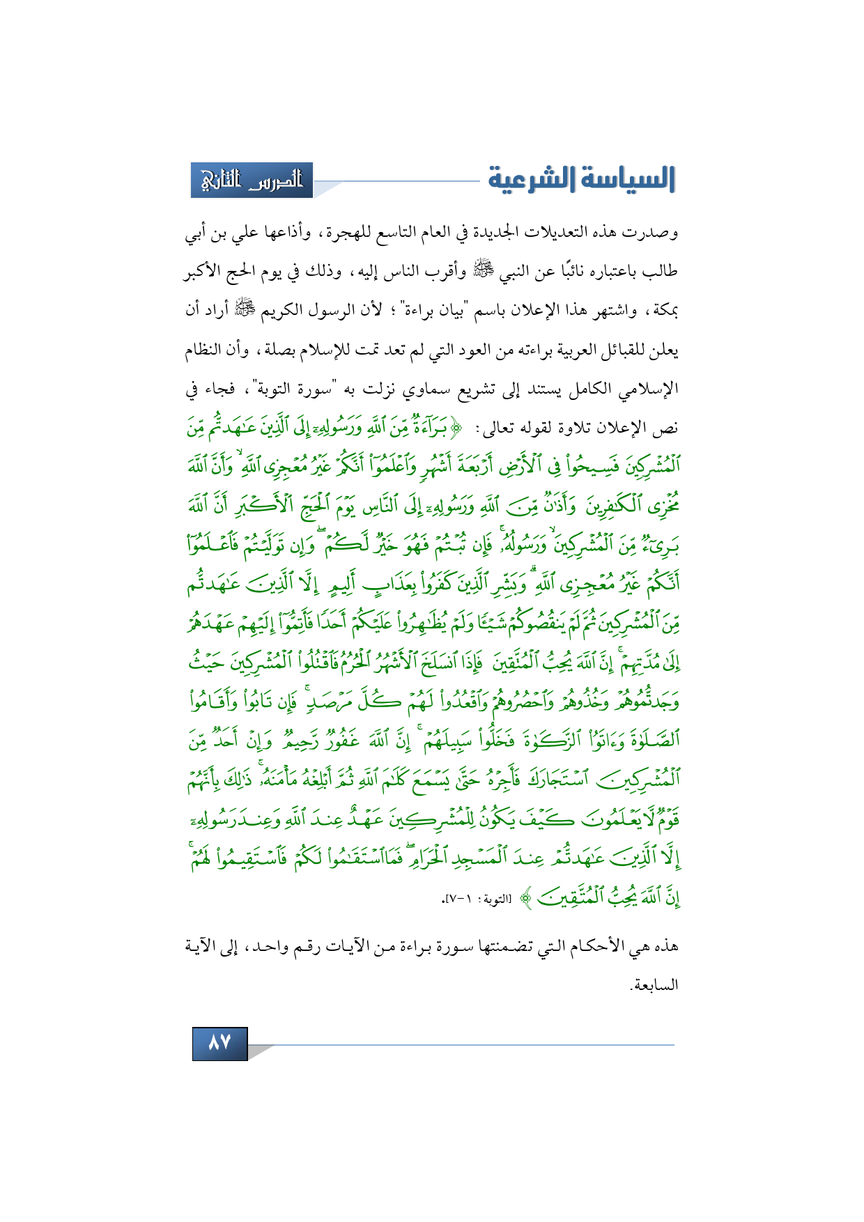 هذه هي الأحكام التي تضمنتها سورة براءة من الآيات رقم واحد، إلى الآية السادية.