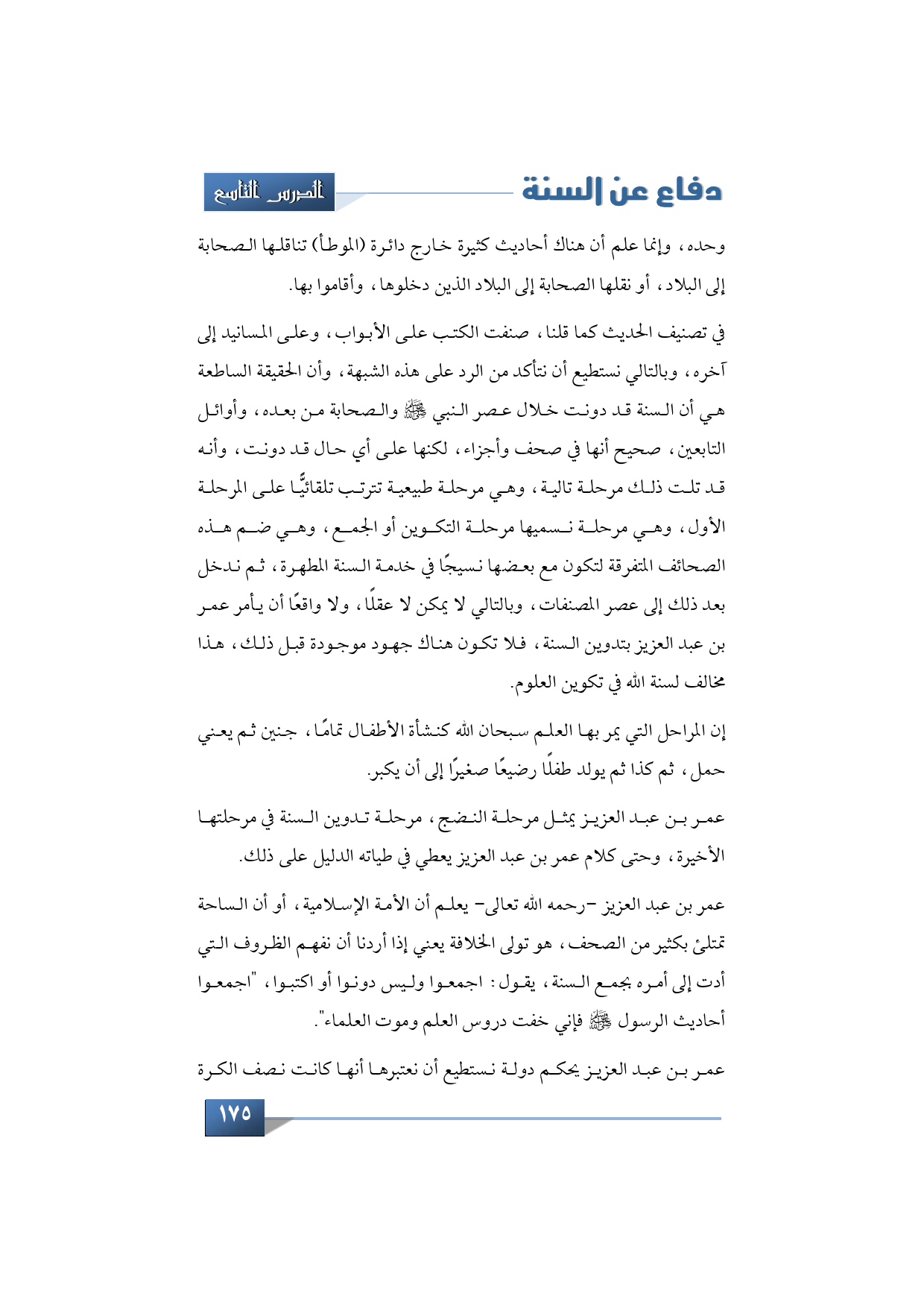عمر بن عبد العزيز يمثل مرحلة النضج، مرحلة تدوين السنة في مرحلتها الأخيرة، وحتى كلام عمر بن عبد العزيز يعطي في طياته الدليل على ذلك.