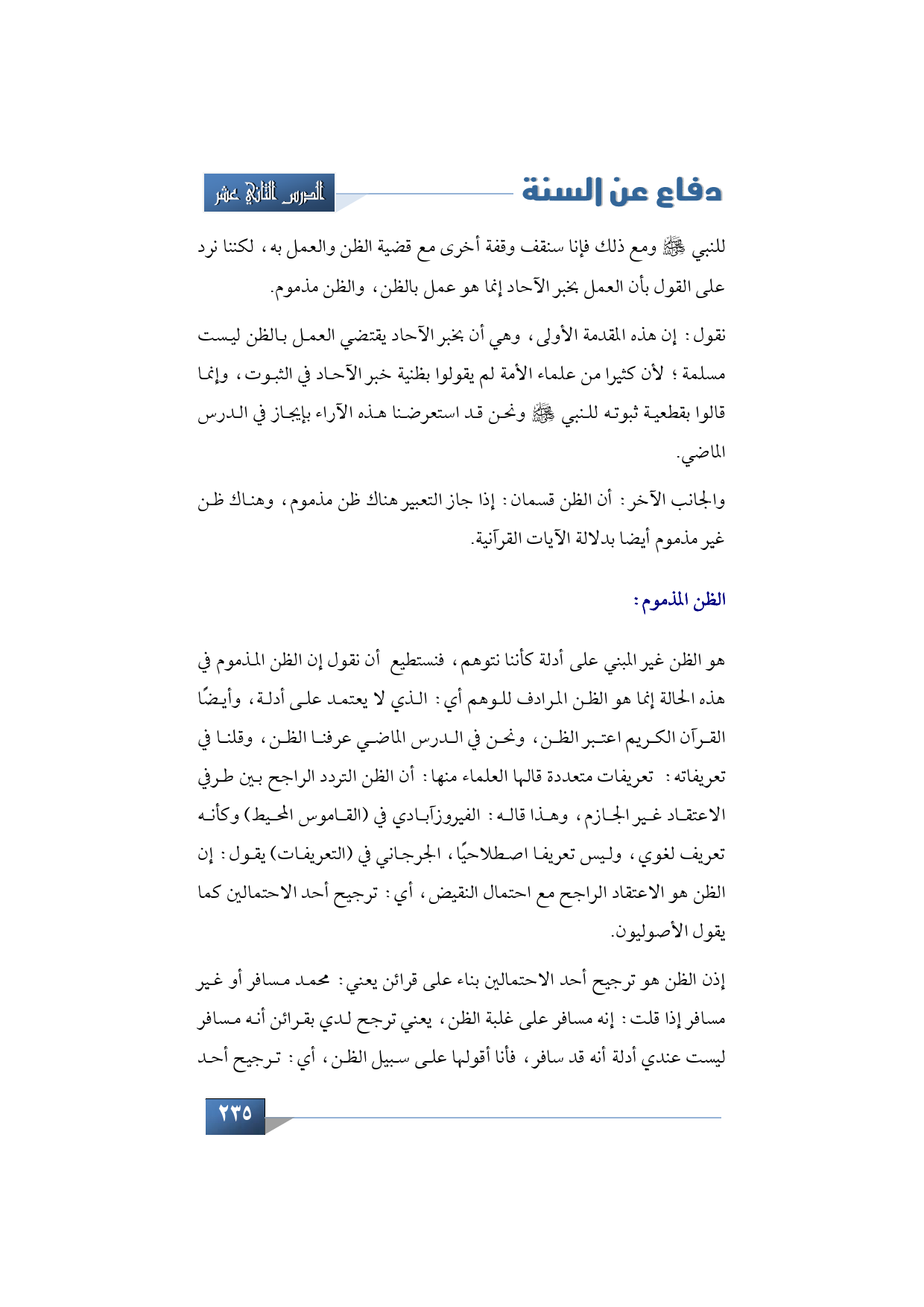 للنبي -صلى الله عليه وسلم- ومع ذلك فإنا سنقف وقفة أخرى مع قضية الظن والعمل به، لكننا نرد على القول بأن العمل بخبر الآحاد إنما هو عمل بالظن، والظن مذموم.