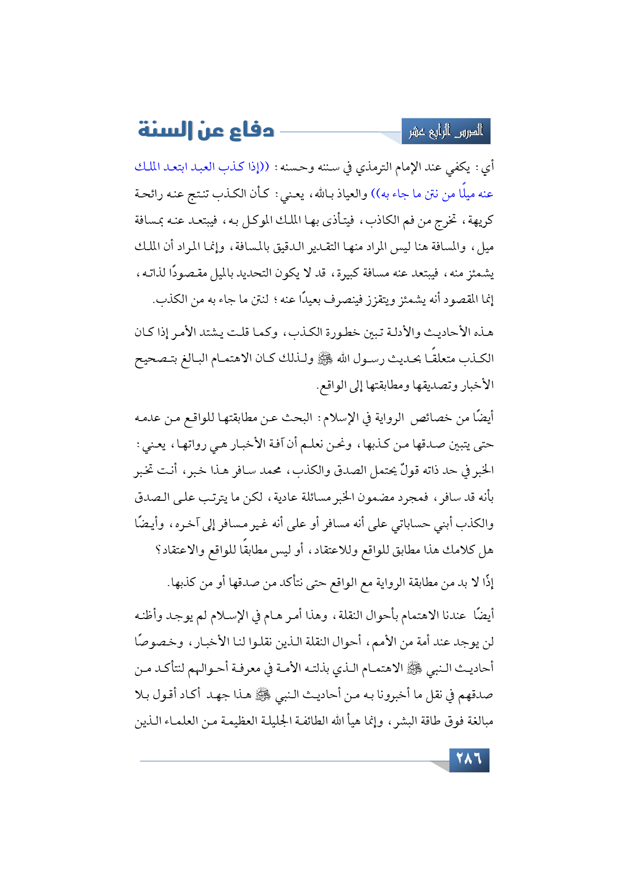 هذه الأحاديث والأدلة تبين خطورة الكذب، وكما قلت يشتد الأمر إذا كان الكذب متعلقًا بحديث رسول الله -صلى الله عليه وسلم- ولذلك كان الاهتمام البالغ بتصحيح الأخبار وتصديقها ومطابقتها إلى الواقع.