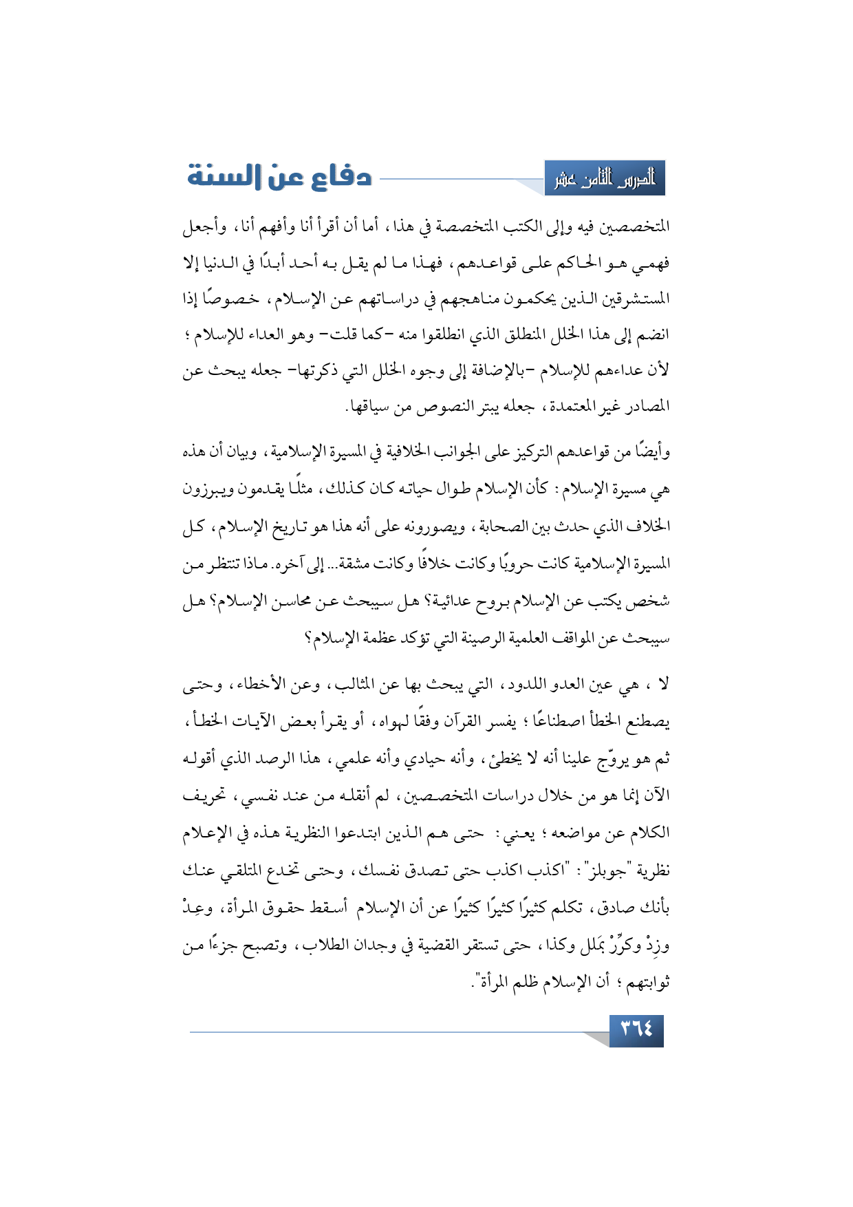 لا، هي عين العدو اللدود، التي يبحث بها عن المثالب، وعن الأخطاء، وحتى يصطنع الخطأ اصطناعًا؛ يفسر القرآن وفقًا لهواه، أو يقرأ بعض الآيات الخطأ، ثم هو يروّج علينا أنه لا يخطئ، وأنه حيادي وأنه علمي، هذا الرصد الذي أقوله الآن إنما هو من خلال دراسات المتخصصين، لم أنقله من عند نفسي، تحريف الكلام عن مواضعه؛ يعني: حتى هم الذين ابتدعوا النظرية هذه في الإعلام نظرية "جوبلز": اكذب اكذب حتى تصدق نفسك، وحتى تخدع المتلقي عنك بأنك صادق، تكلم كثيرًا كثيرًا كثيرًا عن أن الإسلام أسقط حقوق المرأة، وعِدْ وزِدْ وكرِّرْ بمَلل وكذا، حتى تستقر القضية في وجدان المستمعين، وتصبح جزءًا من ثوابتهم؛ أن الإسلام ظلم المرأة.