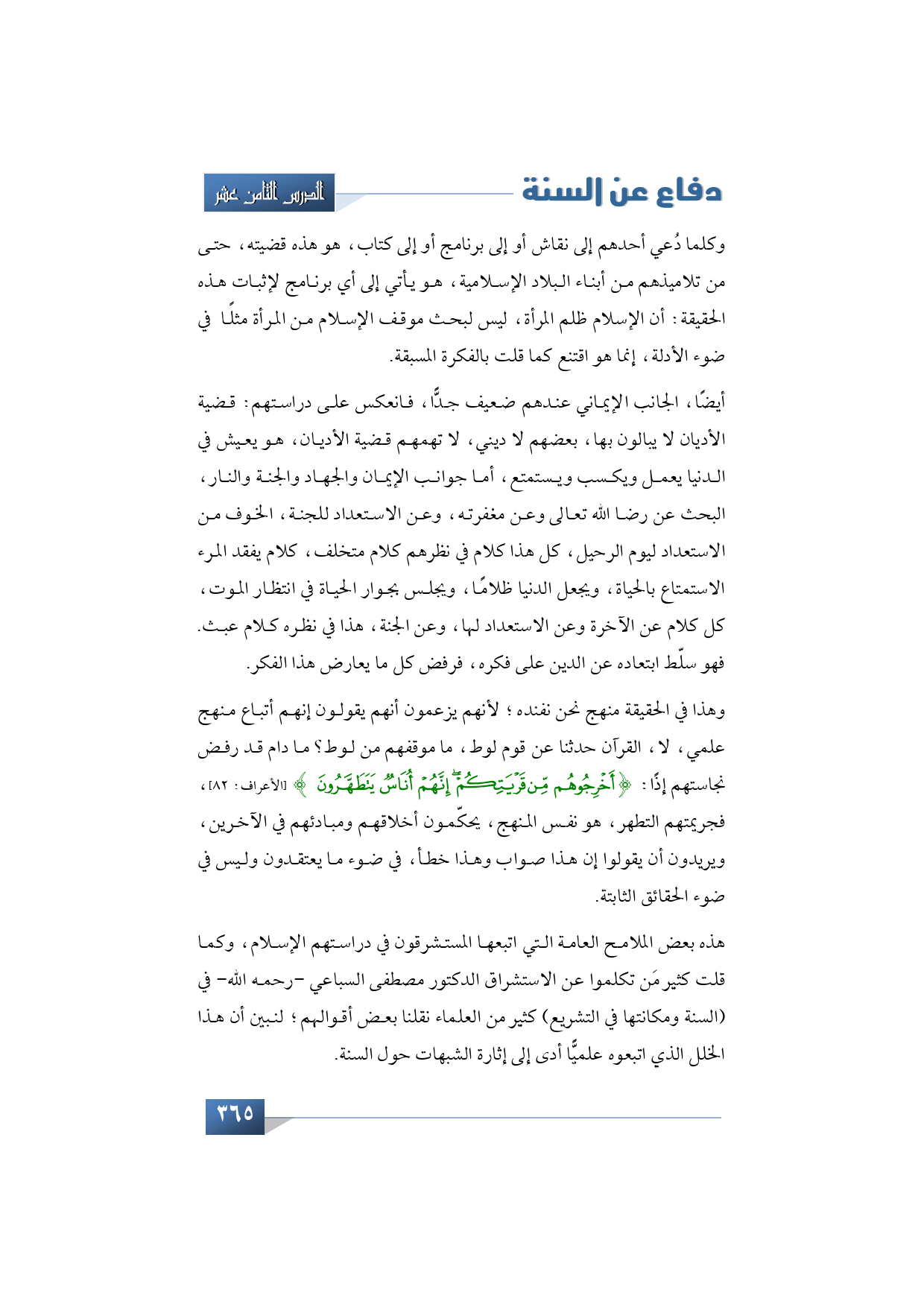 وهذا في الحقيقة منهج نحن نفنده؛ لأنهم يزعمون أنهم يقولون إنهم أتباع منهج علمي، لا، القرآن حدثنا عن قوم لوط، ما موقفهم من لوط؟ ما دام قد رفض نجاستهم إذًا: {أَخْرِجُوهُمْ مِنْ قَرْيَتِكُمْ إِنَّهُمْ أُنَاسٌ يَتَطَهَّرُونَ} (الأعراف: 82)، فجريمتهم التطهر، هو نفس المنهج، يحكّمون أخلاقهم ومبادئهم في الآخرين، ويريدون أن يقولوا إن هذا صواب وهذا خطأ، في ضوء ما يعتقدون وليس في ضوء الحقائق الثابتة.