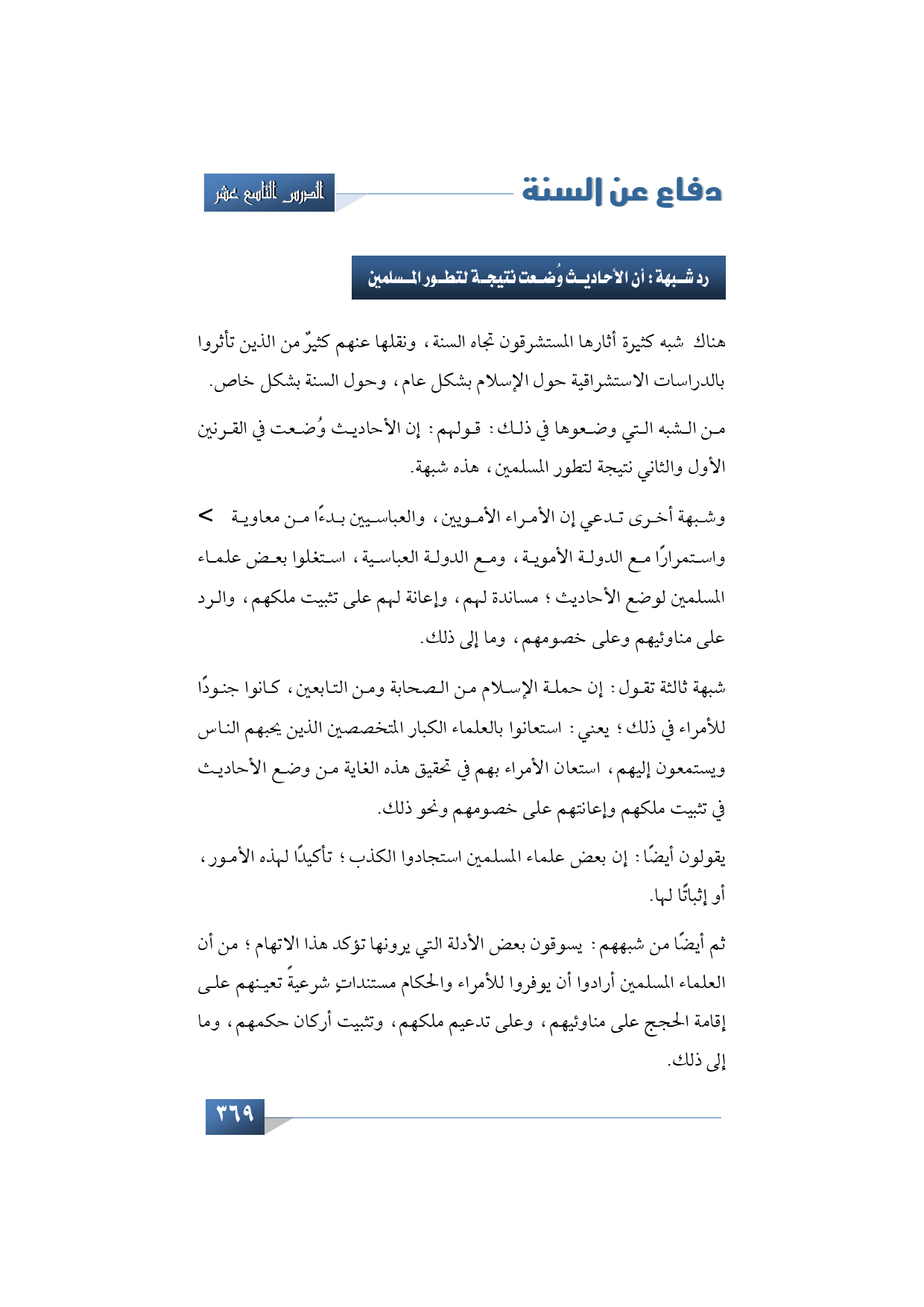(رد شبهات المستشرقين ودفع افتراءاتهم تجاه السنة)