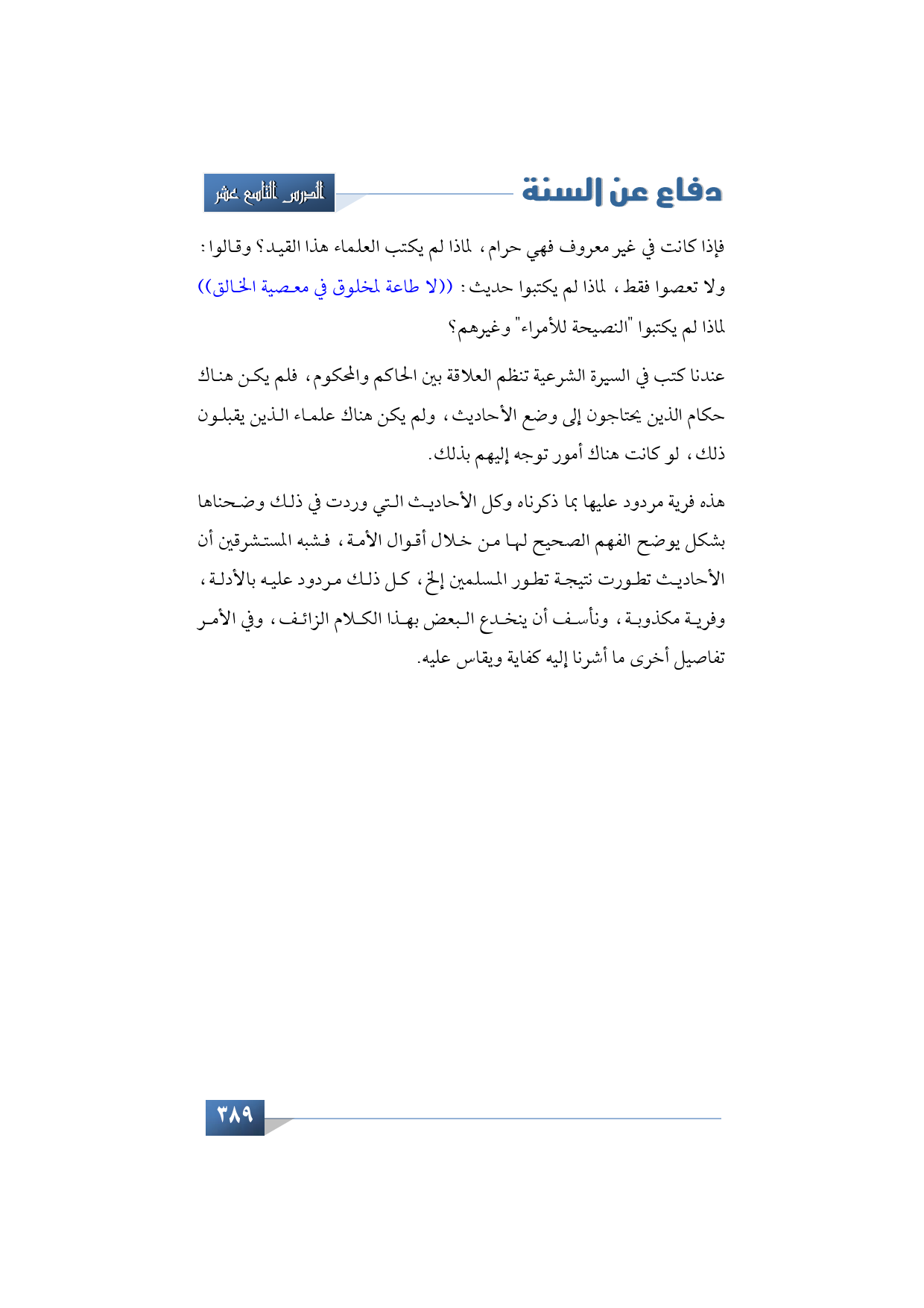 عندنا كتب في السيرة الشرعية تنظم العلاقة بين الحاكم والمحكوم، فلم يكن هناك حكام الذين يحتاجون إلى وضع الأحاديث، ولم يكن هناك علماء الذين يقبلون ذلك، لو كانت هناك أمور توجه إليهم بذلك.