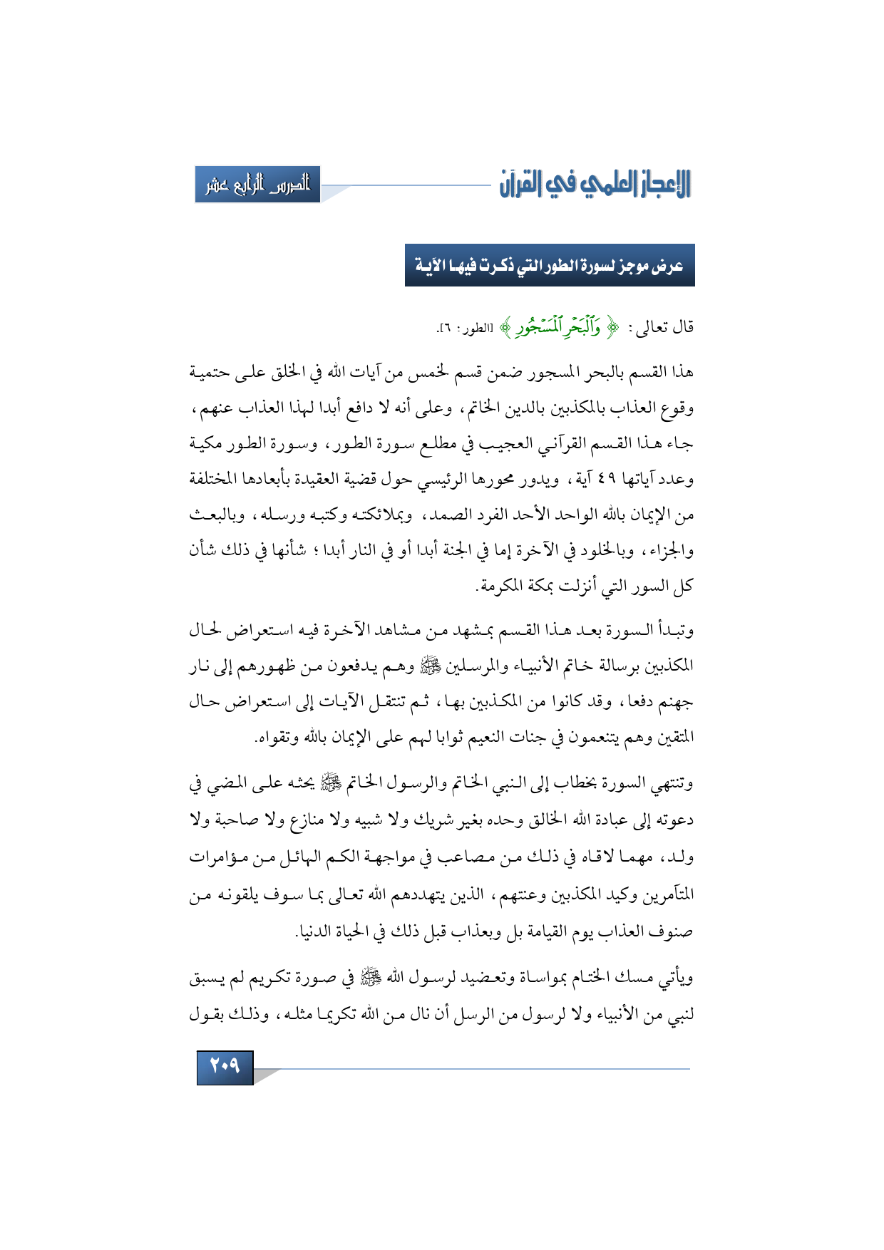 سنشرح قول الله تعالي: {وَالْبَحْرِ الْمَسْجُورِ} (الطور: 6).