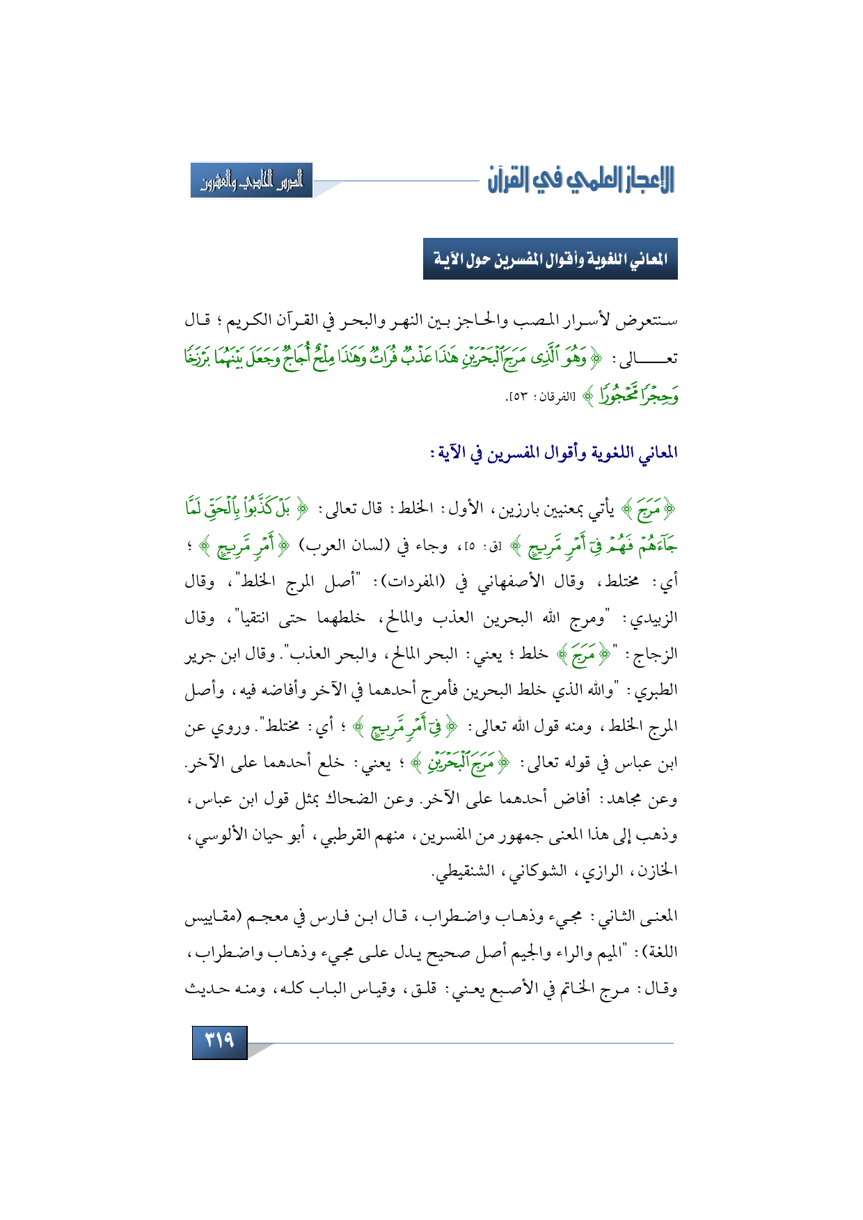 (شرح قو ل الله تعالى: {وَهُوَ الَّذِي مَرَجَ الْبَحْرَيْنِ ... })