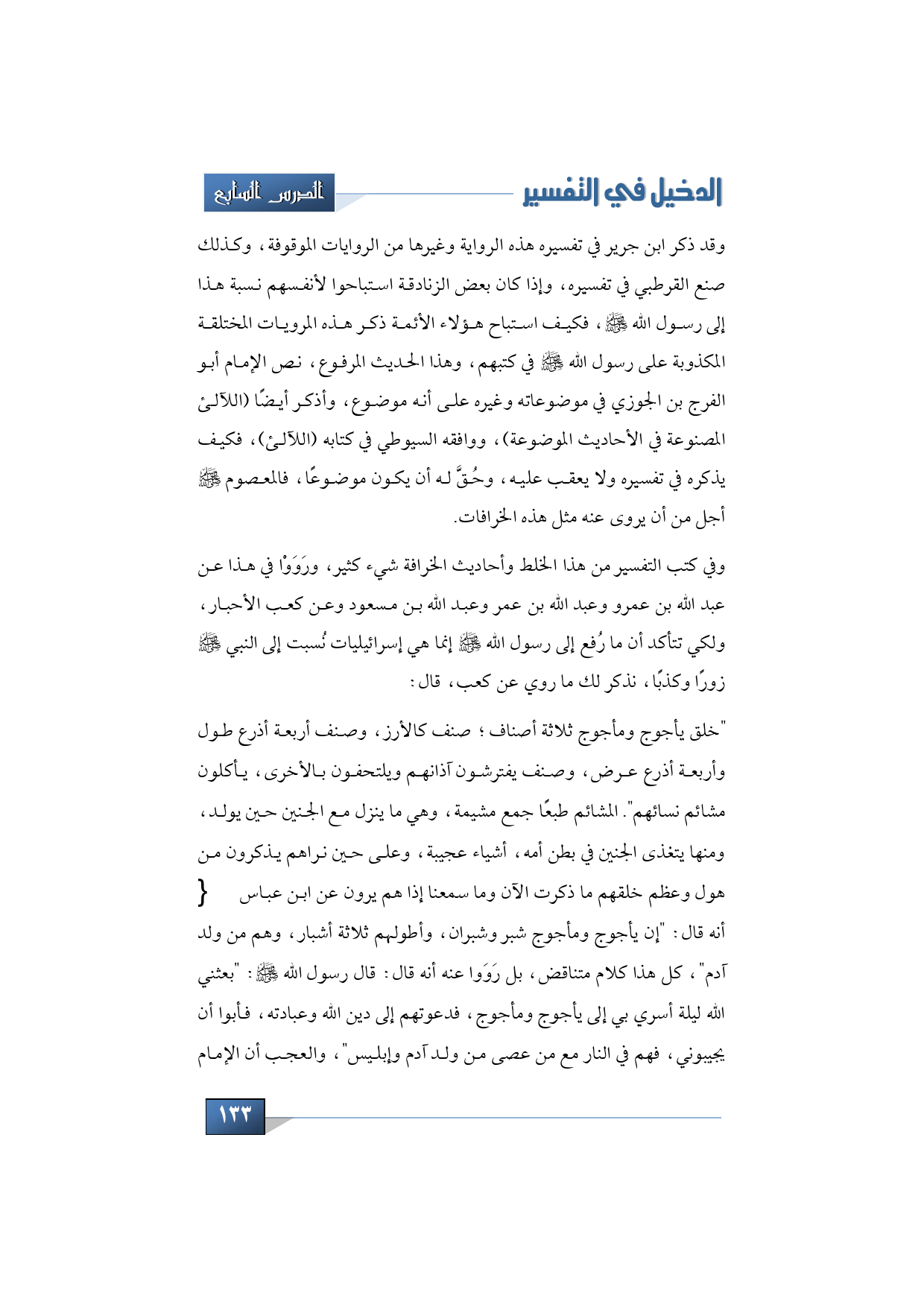 وقد ذكر ابن جرير في تفسيره هذه الرواية وغيرها من الروايات الموقوفة، وكذلك صنع القرطبي في تفسيره، وإذا كان بعض الزنادقة استباحوا لأنفسهم نسبة هذا إلى رسول الله -صلى الله عليه وسلم، فكيف استباح هؤلاء الأئمة ذكر هذه المرويات المختلقة المكذوبة على رسول الله -صلى الله عليه وسلم- في كتبهم، وهذا الحديث المرفوع، نص الإمام أبو الفرج بن الجوزي في موضوعاته وغيره على أنه موضوع، وأ ذكر أيضًا (اللآلئ المصنوعة في الأحاديث الموضوعة)، ووافقه السيوطي في كتابه (اللآلئ)، فكيف يذكره في تفسيره ولا يعقب عليه، وحُقَّ له أن يكون موضوعًا، فالمعصوم -صلى الله عليه وسلم- أجل من أن يروى عنه مثل هذه الخرافات.