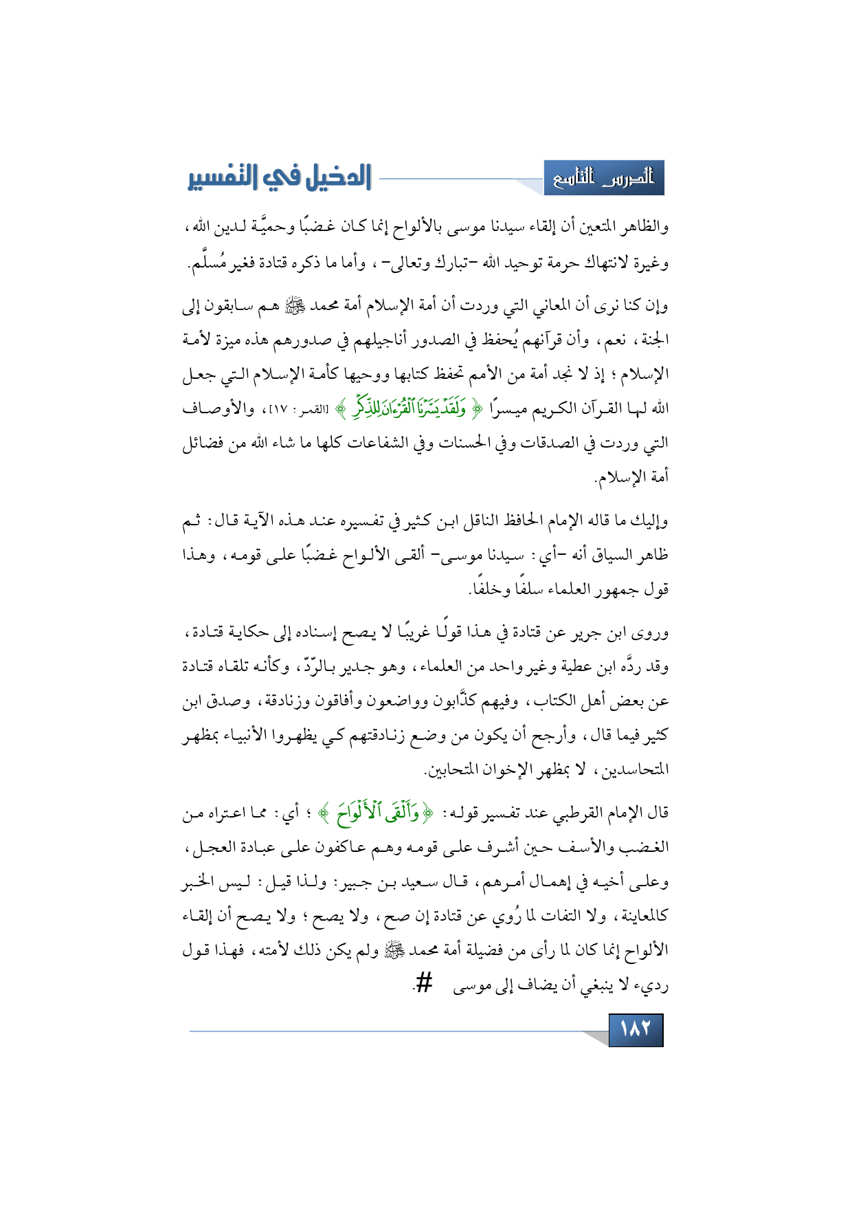 والظاهر المتعين أن إلقاء سيدنا موسى بالألواح إنما كان غضبًا وحميَّة لدين الله، وغيرة لانتهاك حرمة توحيد الله - تبارك وتعالى -، وأما ما ذكره قتادة فغير مُسلَّم.