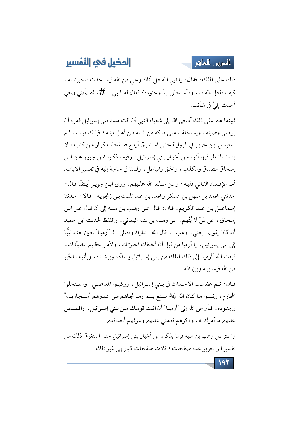 واسترسل وهب بن منبه فيما يذكره من أخبار بني إسرائيل حتى استغرق ذلك من تفسير ابن جرير عدة صفحات؛ ثلاث صفحات كبار إلى غير ذلك.
