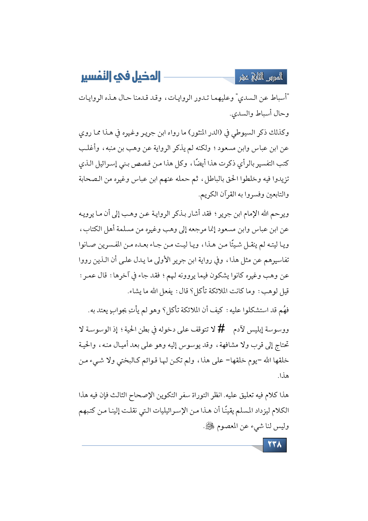 وكذلك ذكر السيوطي في (الدر المنثور) ما رواه ابن جرير وغيره في هذا مما روي عن ابن عباس وابن مسعود؛ ولكنه لم يذكر الرواية عن وهب بن منبه، وأغلب كتب التفسير بالرأي ذكرت هذا أيضًا، وكل هذا من قصص بني إسرائيل الذي تزيدوا فيه وخلطوا الحق بالباطل، ثم حمله عنهم ابن عباس وغيره من الصحابة والتابعين وفسروا به القرآن الكريم.