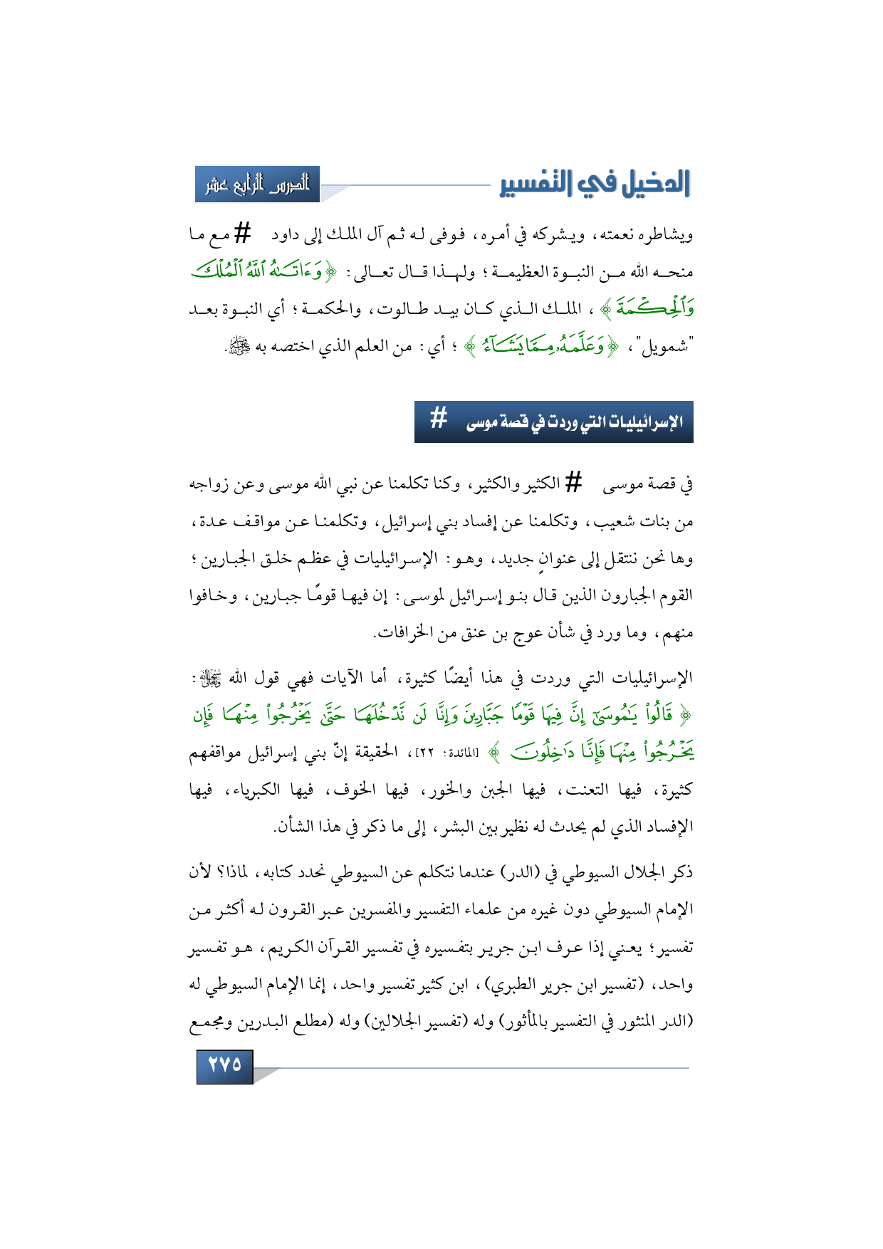 ذكر الجلال السيوطي في (الدر) عندما نتكلم عن السيوطي نحدد كتابه، لماذا؟ لأن الإمام السيوطي دون غيره من علماء التفسير والمفسرين عبر القرون له أكثر من تفسير؛ يعني إذا عرف ابن جرير بتفسيره في تفسير القرآن الكريم، هو تفسير واحد، (تفسير ابن جرير الطبري)، ابن كثير تفسير واحد، إنما الإمام السيوطي له (الدر المنثور في التفسير بالمأثور) وله (تفسير الجلالين) وله (مطلع البدرين ومجمع