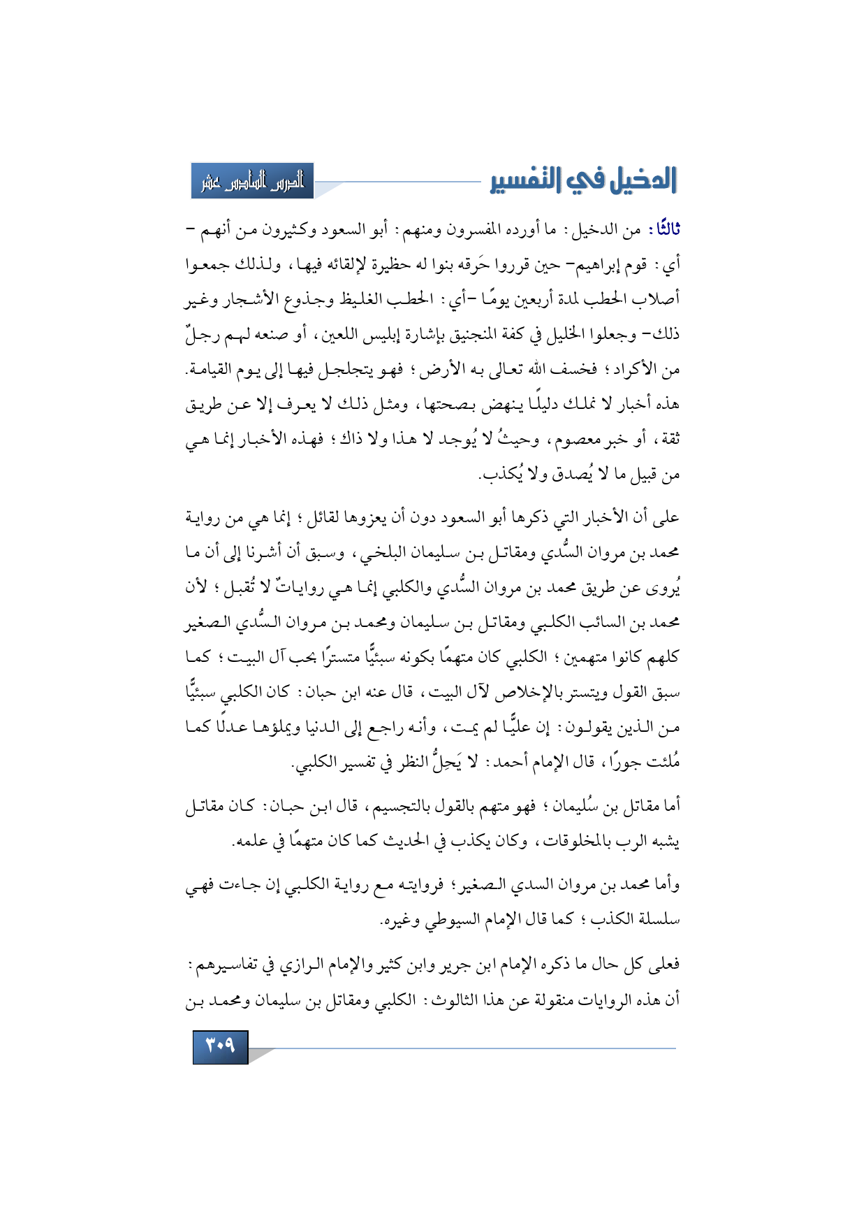 فعلى كل حال ما ذكره الإمام ابن جرير وابن كثير والإمام الرازي في تفاسيرهم: أن هذه الروايات منقولة عن هذا الثالوث: الكلبي ومقاتل بن سليمان ومحمد بن
