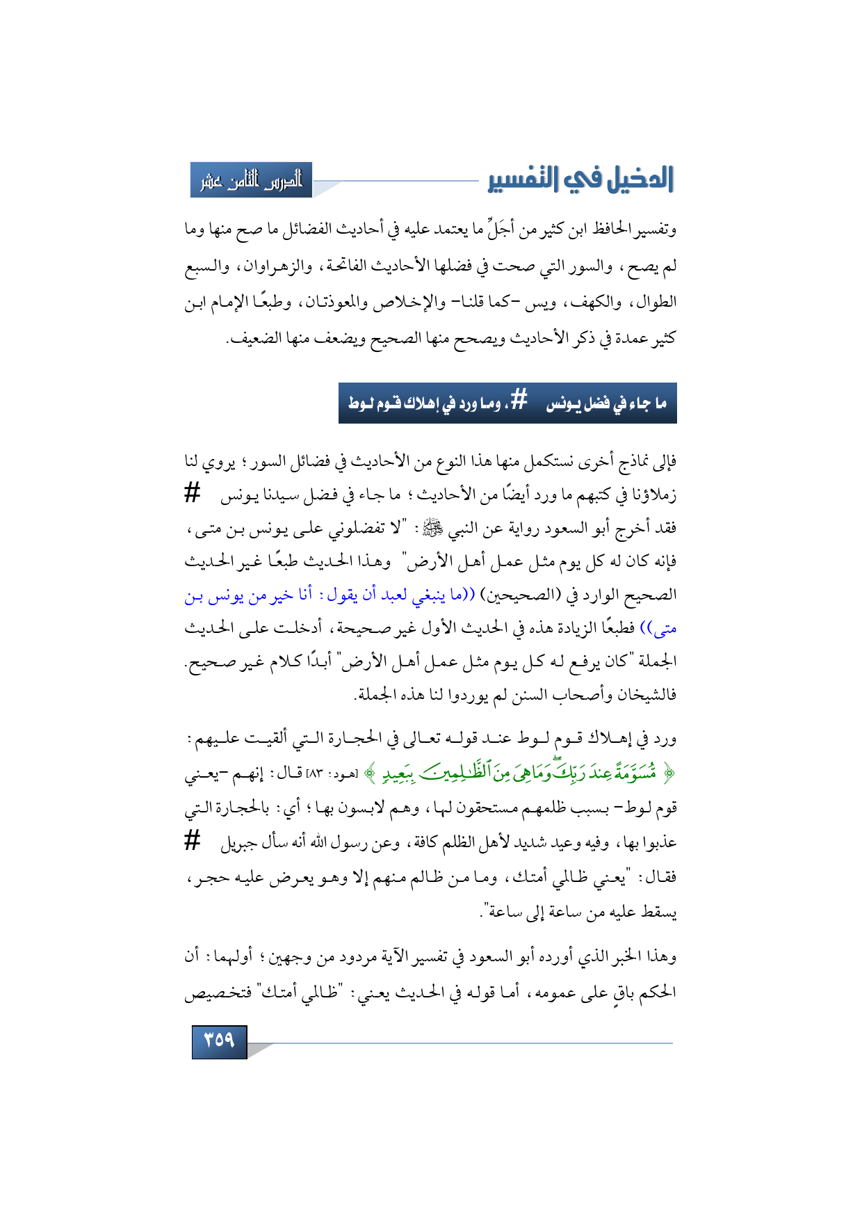 ما جاء في فضل يونس -عليه السلام-، وما ورد في إهلاك قوم لوط
