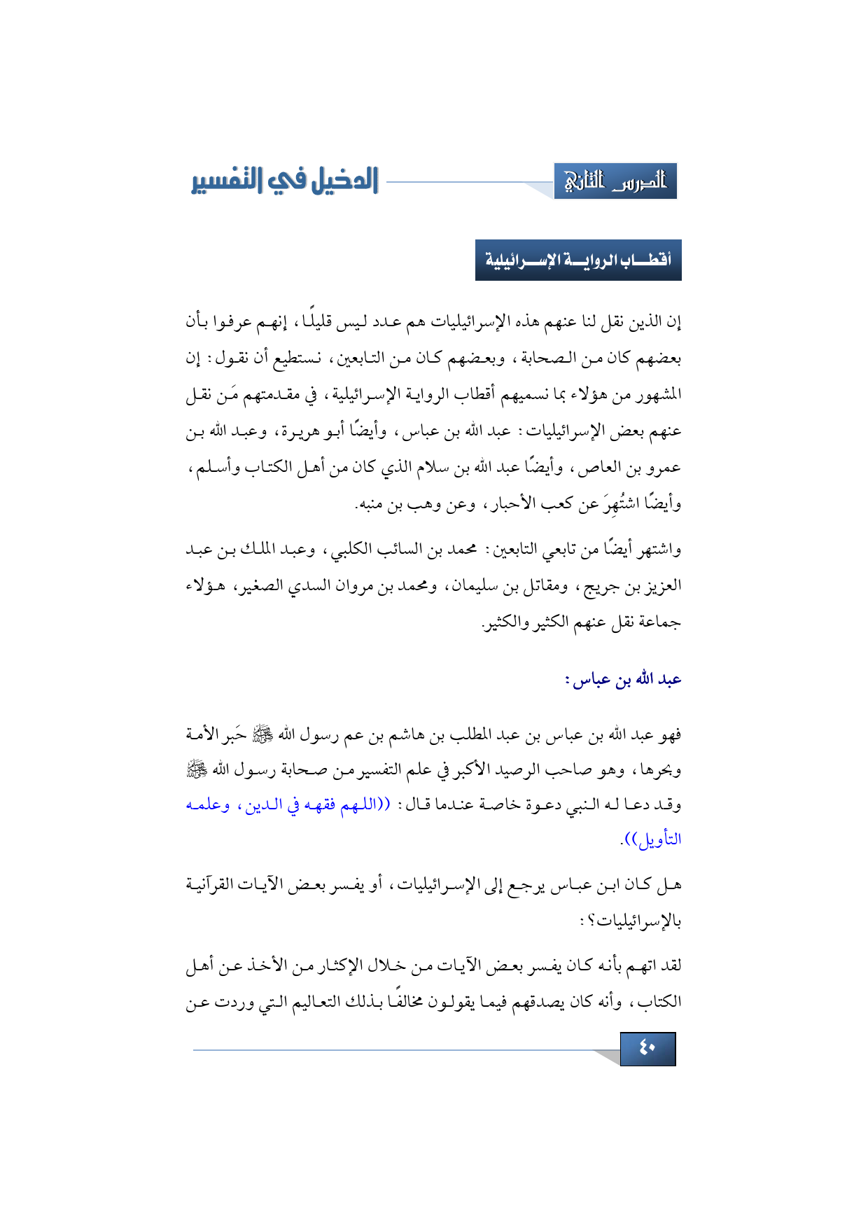 هل كان ابن عباس يرجع إلى الإسرائيليات، أو يفسر بعض الآيات القرآنية بالإسرائيليات؟