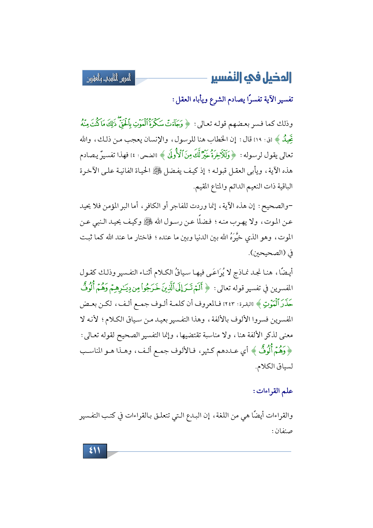 ننتقل من نماذج اللغة إلى ما يتعلق بعلم القراءات: والقراءات أيضًا هي من اللغة، إن البدع التي تتعلق بالقراءات في كتب التفسير صنفان؛