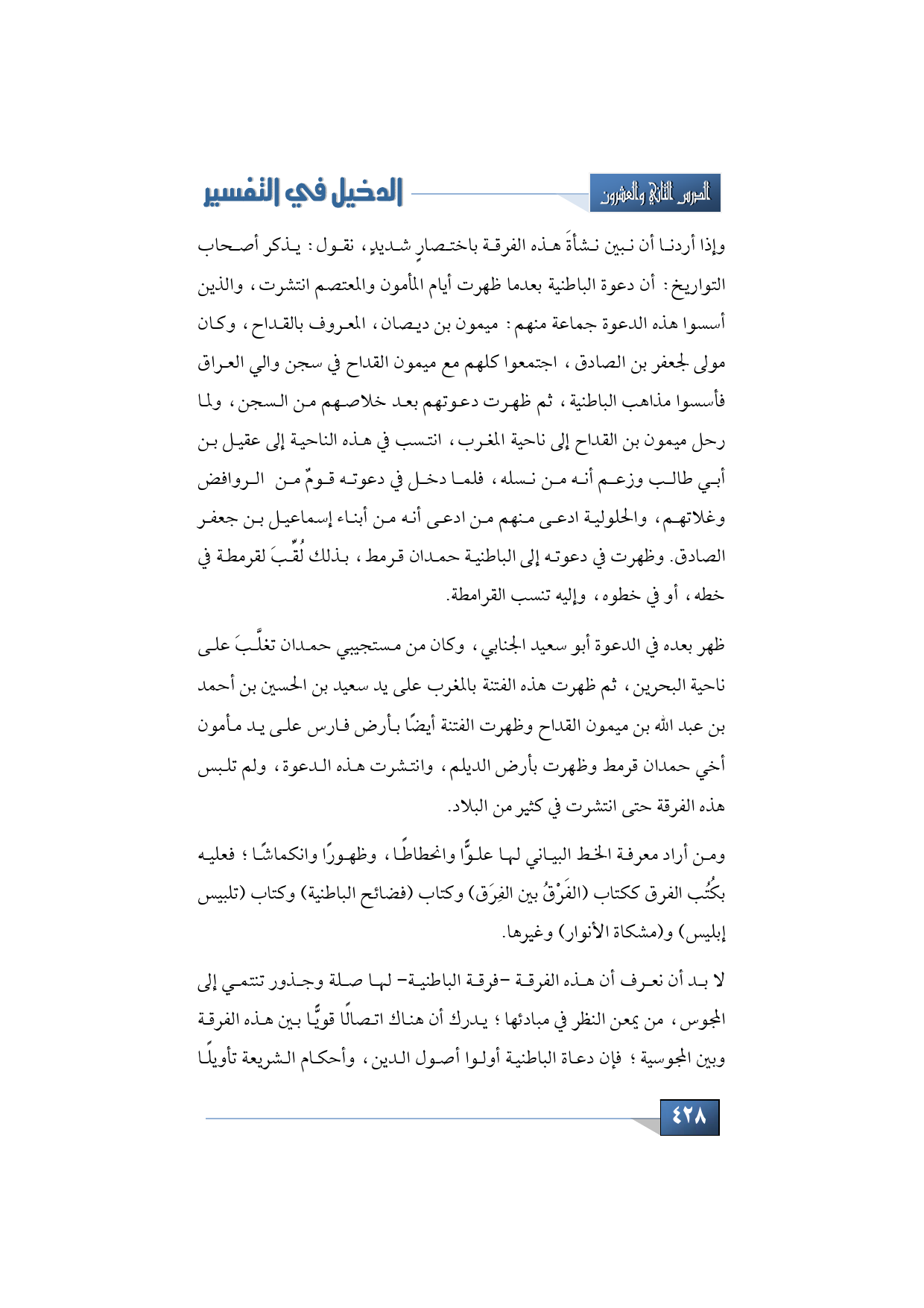 لا بد أن نعرف أن هذه الفرقة -فرقة الباطنية- لها صلة وجذور تنتمي إلى المجوس، من يمعن النظر في مبادئها؛ يدرك أن هناك اتصالًا قويًّا بين هذه الفرقة وبين المجوسية؛ فإن دعاة الباطنية أولوا أصول الدين، وأحكام الشريعة تأويلًا
