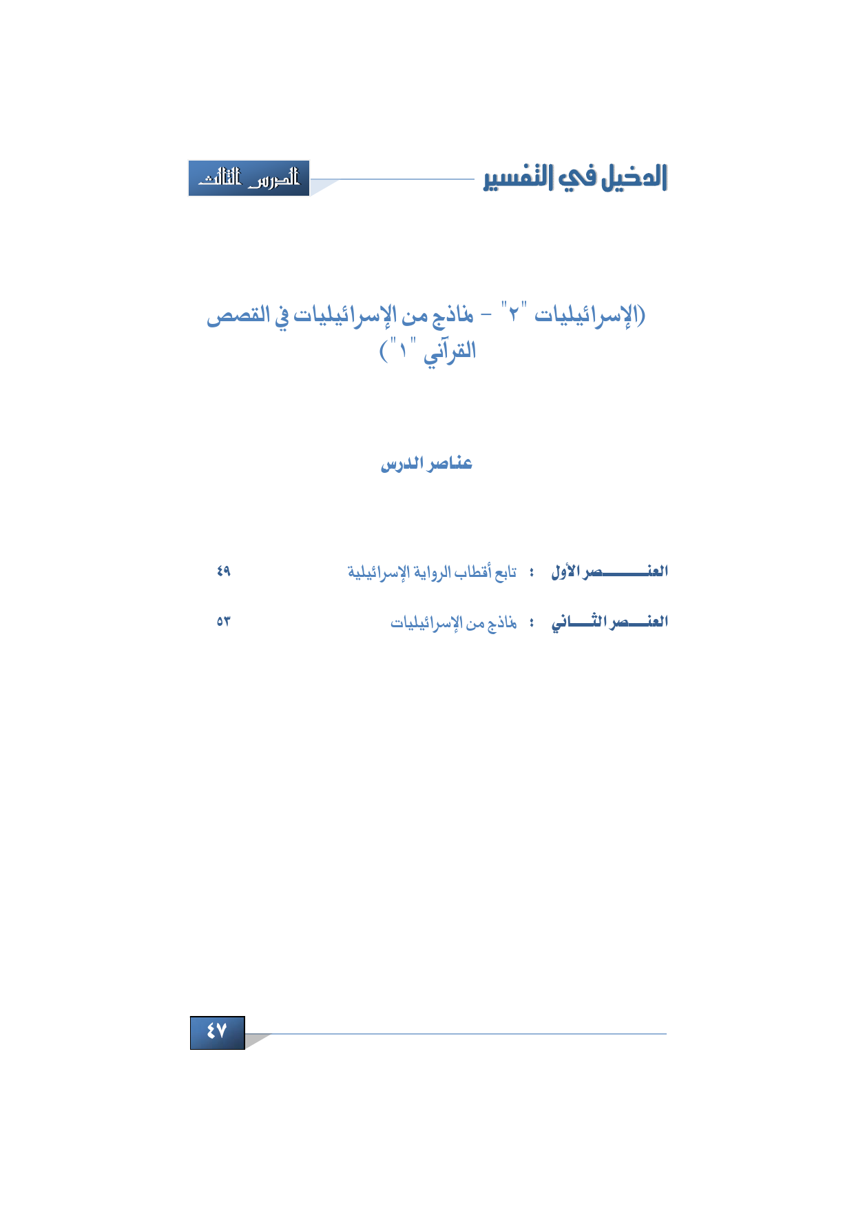 الدرس: 3 الإسرائيليات (2) - نماذج من الإسرائيليات في القصص القرآني (1).