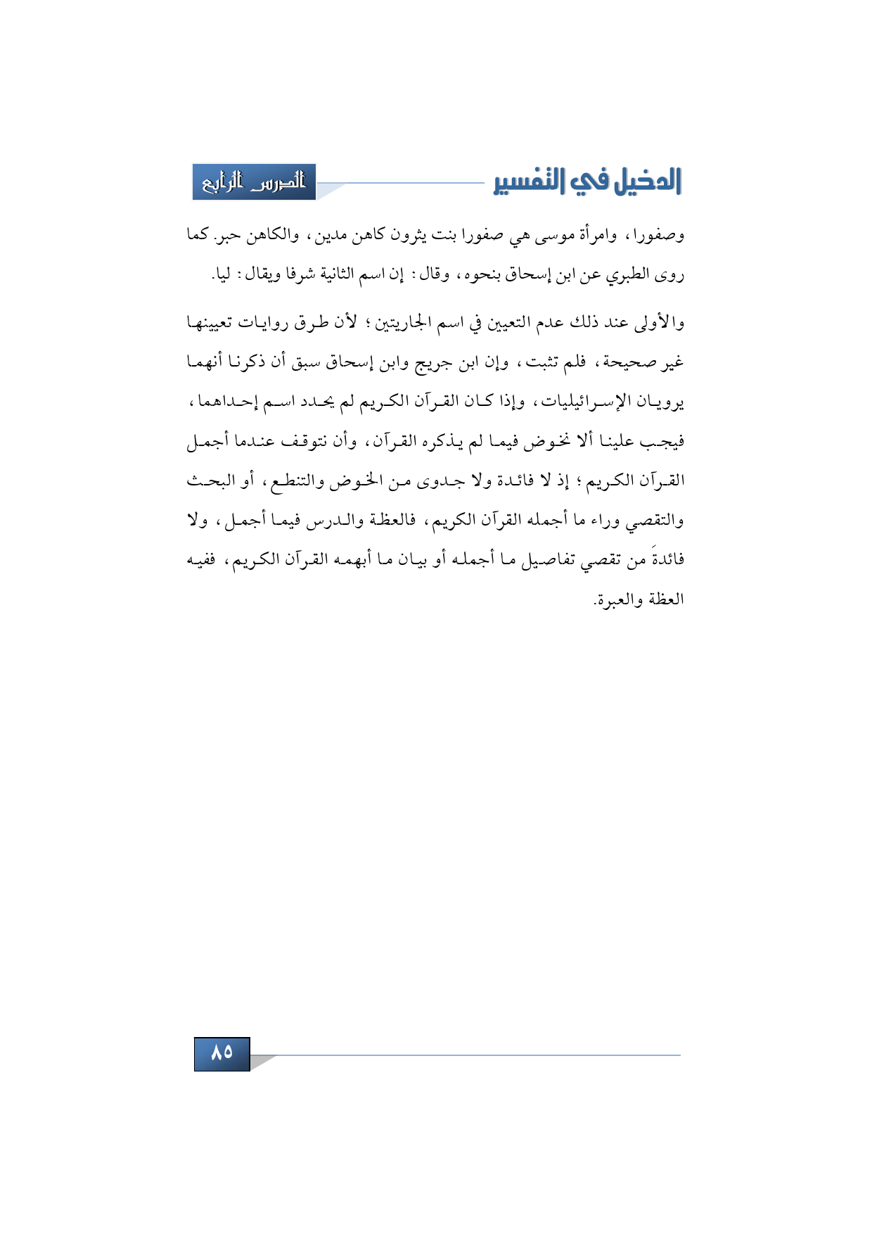 والأولى عند ذلك عدم التعيين في اسم الجاريتين؛ لأن طرق روايات تعيينها غير صحيحة، فلم تثبت، وإن ابن جريج وابن إسحاق سبق أن ذكرنا أنهما يرويان الإسرائيليات، وإذا كان القرآن الكريم لم يحدد اسم إحداهما، فيجب علينا ألا نخوض فيما لم يذكره القرآن، وأن نتوقف عندما أجمل القرآن الكريم؛ إذ لا فائدة ولا جدوى من الخوض والتنطع، أو البحث والتقصي وراء ما أجمله القرآن الكريم، فالعظة والدرس فيما أجمل، ولا فائدةَ من تقصي تفاصيل ما أجمله أو بيان ما أبهمه القرآن الكريم، ففيه العظة والعبرة.