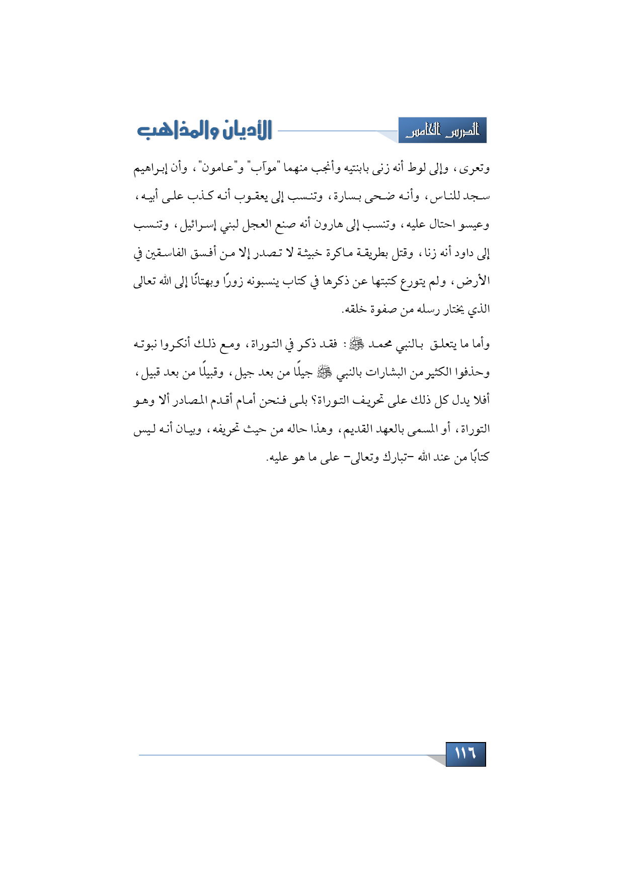 وأما عن النبي محمد -عليه الصلاة والسلام-: فقد ذكر في التوراة، ومع ذلك أنكروا نبوته وحذفوا الكثير من البشارات بالنبي -صلى الله عليه وسلم- جيلًا من بعد جيل، وقبيلًا من بعد قبيل، أفلا يدل كل ذلك على تحريف التوراة؟ بلى فنحن أمام أقدم المصادر ألا وهو التوراة، أو المسمى بالعهد القديم، وهذا حاله من حيث تحريفه، وبيان أنه ليس كتابًا من عند الله -تبارك وتعالى- على ما هو عليه.