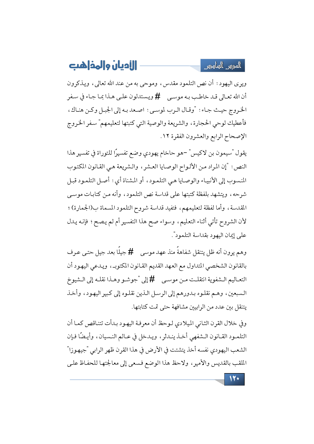 يقول "سيمون بن لاكيس": هو حاخام يهودي وضع تفسيرًا للتوراة في تفسير هذا النص: إن المراد من الألواح الوصايا العشر، والشريعة هي القانون المكتوب المنسوب إلى الأنبياء والوصايا هي التلمود، أو المشناة أي: أصل التلمود قبل شرحه، ويتشهد بلفظة كتبتها على قداسة نص التلمود، وأنه من كتابات موسى المقدسة، وأما لفظة لتعليمهم، فتفيد قداسة شروح التلمود المسماة بالجمارة؛ لأن الشروح تأتي أثناء التعليم، وسواء صح هذا التفسير أم لم يصح؛ فإنه يدل على إيمان اليهود بقداسة التلمود".