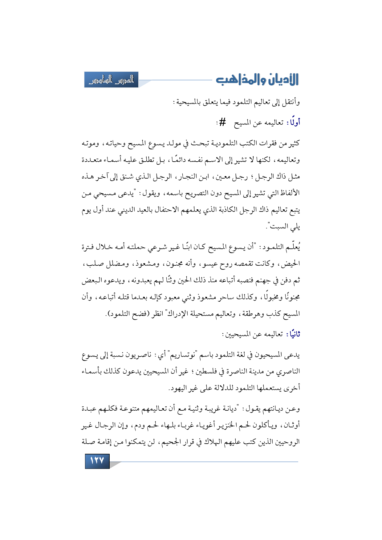 وأنتقل إلى تعاليم التلمود فيما يتعلق بالمسيحيين: