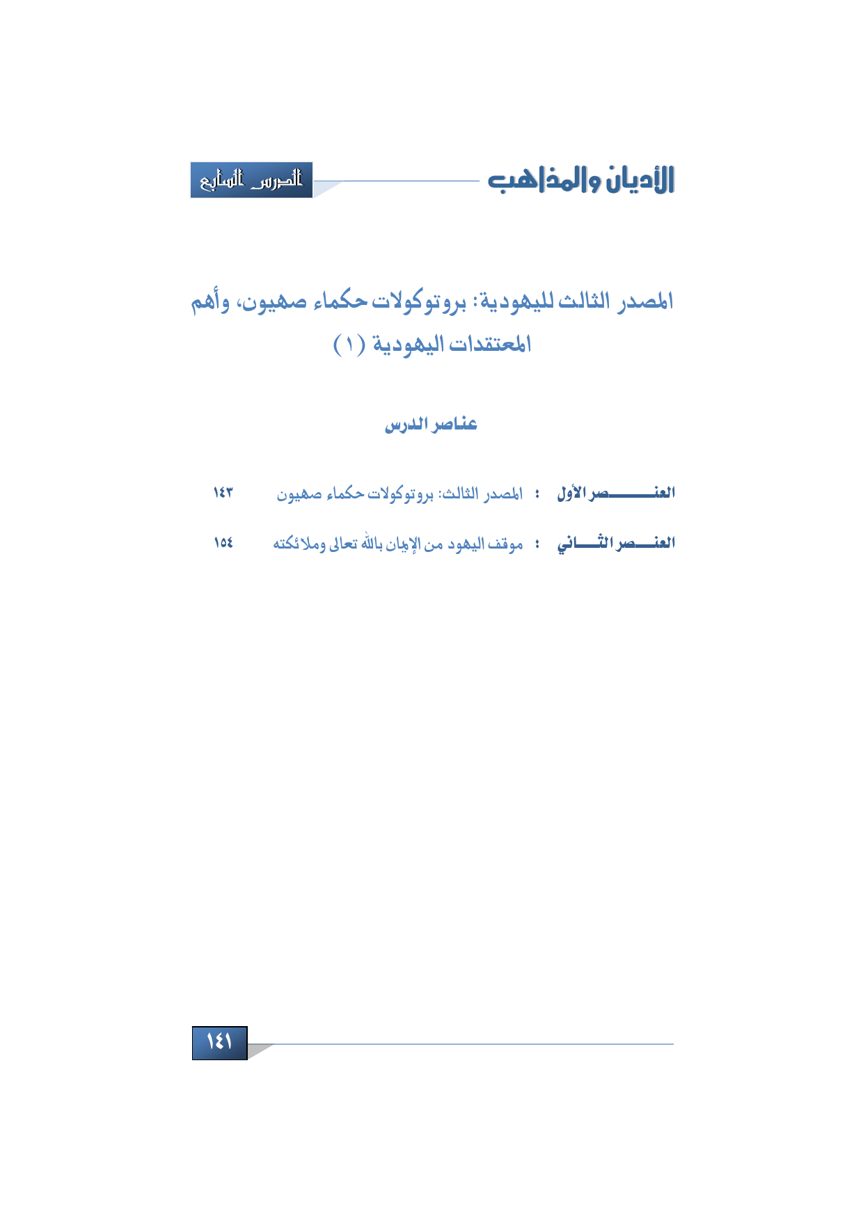 الدرس: 7 المصدر الثالث لليهودية: بروتوكولات حكماء صهيون، وأهم المعتقدات اليهودية (1).