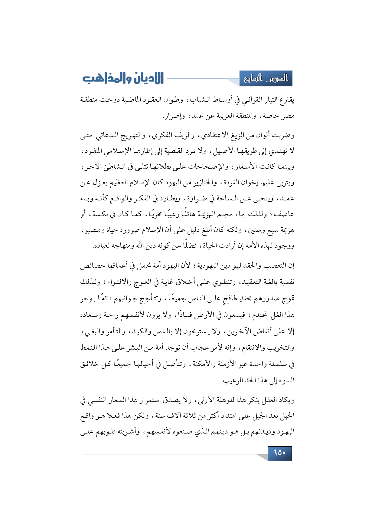 إن التعصب والحقد لهو دين اليهودية؛ لأن اليهود أمة تحمل في أعماقها خصائص نفسية بالغة التعقيد، وتنطوي على أخلاق غاية في العوج والالتواء؛ ولذلك تموج صدورهم بحقدٍ طافحٍ على الناس جميعًا، وتتأجج جوانبهم دائمًا بوحر هذا الغل المحتدم؛ فيسعون في الأرض فسادًا، ولا يرون لأنفسهم راحة وسعادة إلا على أنقاض الآخرين، ولا يستريحون إلا بالدس والكيد، والتآمر والبغي، والتخريب والانتقام، وإنه لأمر عجاب أن توجد أمة من البشر على هذا النمط في سلسلة واحدة عبر الأزمنة والأمكنة، وتتأصل في أجيالها جميعًا كل خلائق السوء إلى هذا الحد الرهيب.