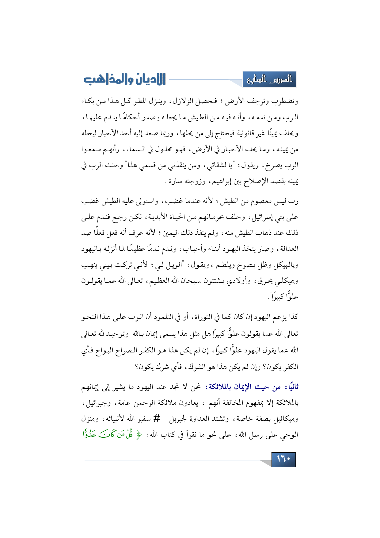 وأنتقل من الكلام عن الإيمان بالله إلى الإيمان بالملائكة، نحن لا نجد عند اليهود ما يشير إلى إيمانهم بالملائكة إلا بمفهوم المخالفة أنهم يعادون ملائكة الرحمن عامة، وجبرائيل، وميكائيل بصفة خاصة، وتشتد العداوة لجبريل -عليه السلام- سفير الله لأنبيائه، ومنزل الوحي على رسل الله، على نحو ما نقرأ في كتاب الله: {قُلْ مَنْ كَانَ عَدُوًّا