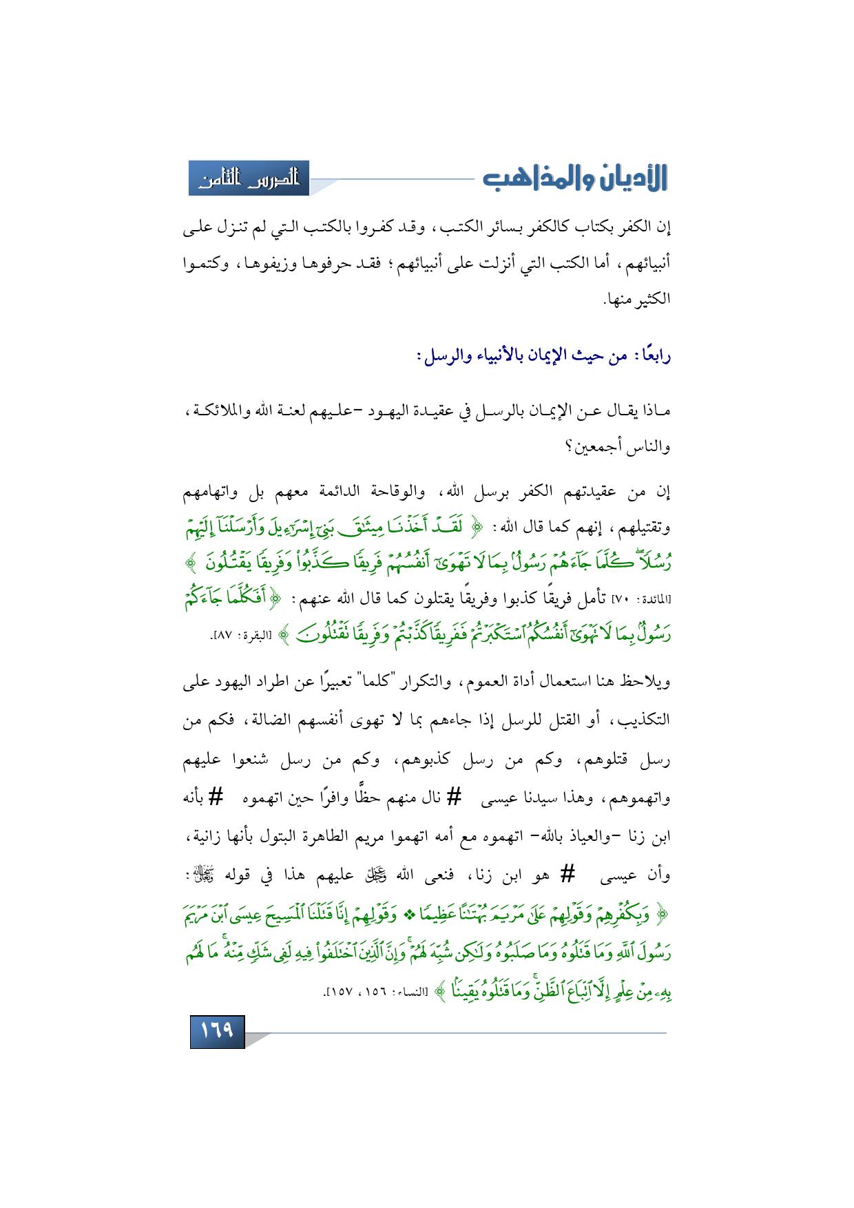 فأي إيمان هذا؟ إنه الكفر؛ لأن الكفر بكتاب كالكفر بسائر الكتب، وقد كفروا بالكتب التي لم تنزل على أنبيائهم، أما الكتب التي أنزلت على أنبيائهم؛ فقد حرفوها وزيفوها، وكتموا الكثير منها، فهذا عن عقيدة اليهود في الإيمان بالكتب، الإيمان بالله، وملائكته، وكتبه، ورسله، ماذا يقال عن الإيمان بالرسل في عقيدة اليهود -عليهم لعنة الله والملائكة، والناس أجمعين؟