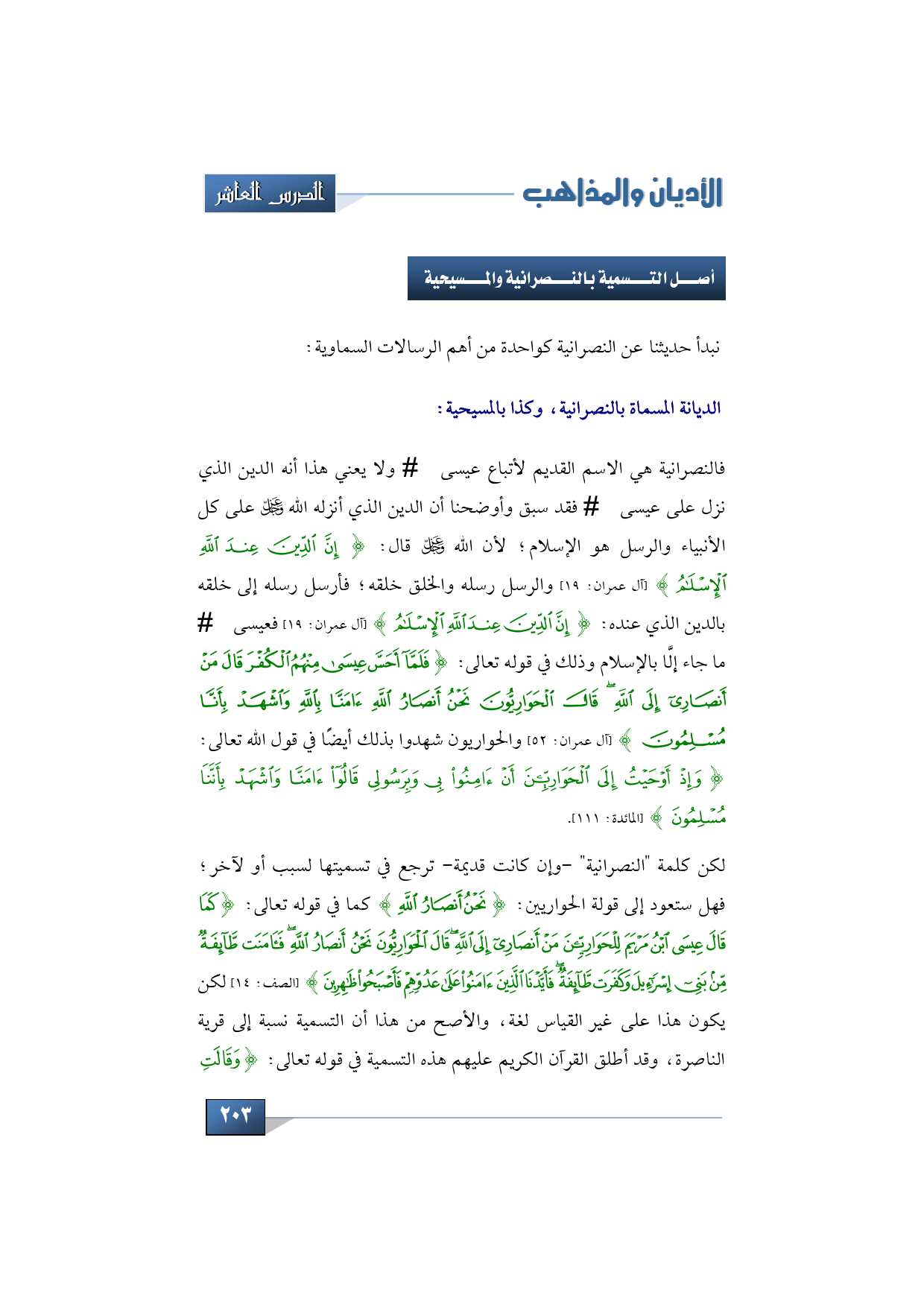 الديانة المسماة بالنصرانية، وكذا بالمسيحية: