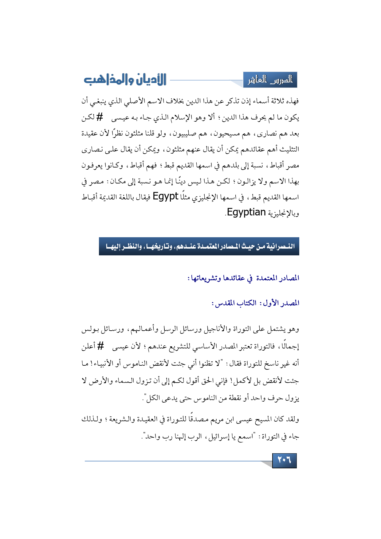 فهذه ثلاثة أسماء إذن تذكر عن هذا الدين بخلاف الاسم الأصلي الذي ينبغي أن يكون ما لم يحرف هذا الدين؛ ألا وهو الإسلام الذي جاء به عيسى -عليه السلام- لكن بعد هم نصارى، هم مسيحيون، هم صليبيون، ولو قلنا مثلثون نظرًا لأن عقيدة التثليث أهم عقائدهم يمكن أن يقال عنهم مثلثون، ويمكن أن يقال على نصارى مصر أقباط، نسبة إلى بلدهم في اسمها القديم قبط؛ فهم أقباط، وكانوا يعرفون بهذا الاسم ولا يزالون؛ لكن هذا ليس دينًا إنما هو نسبة إلى مكان: مصر في اسمها القديم قبط، في اسمها الإنجليزي مثلًا Egypt فيقال باللغة القديمة أقباط وبالإنجليزية Egyptian.
