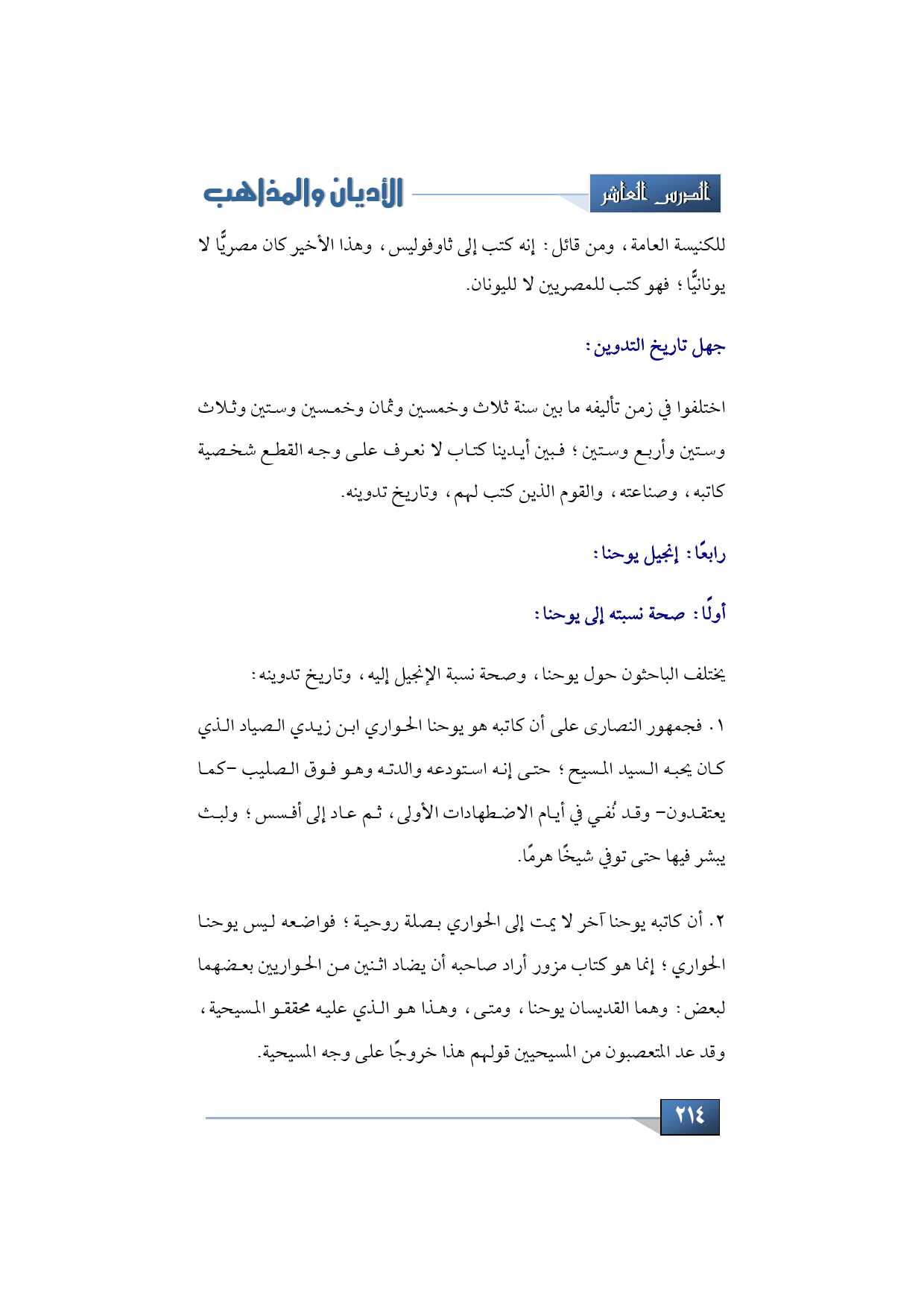 2 - أن كاتبه يوحنا آخر لا يمت إلى الحواري بصلة روحية؛ فواضعه ليس يوحنا الحواري؛ إنما هو كتاب مزور أراد صاحبه أن يضاد اثنين من الحواريين بعضهما لبعض: وهما القديسان يوحنا، ومتى، وهذا هو الذي عليه محققو المسيحية، وقد عد المتعصبون من المسيحيين قولهم هذا خروجًا على وجه المسيحية.