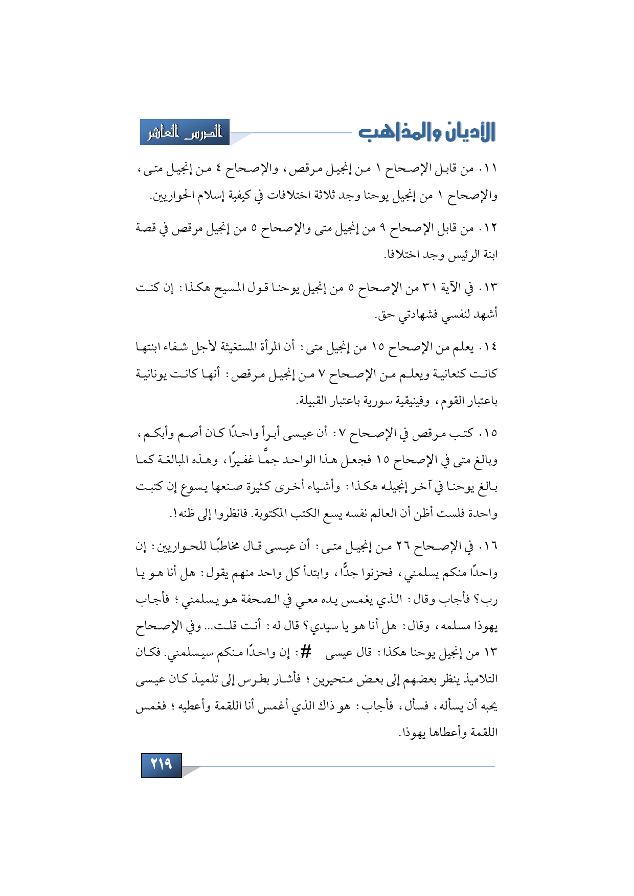 - من قابل الإصحاح 9 من إنجيل متى والإصحاح 5 من إنجيل مرقص في قصة ابنة الرئيس وجد اختلافا.