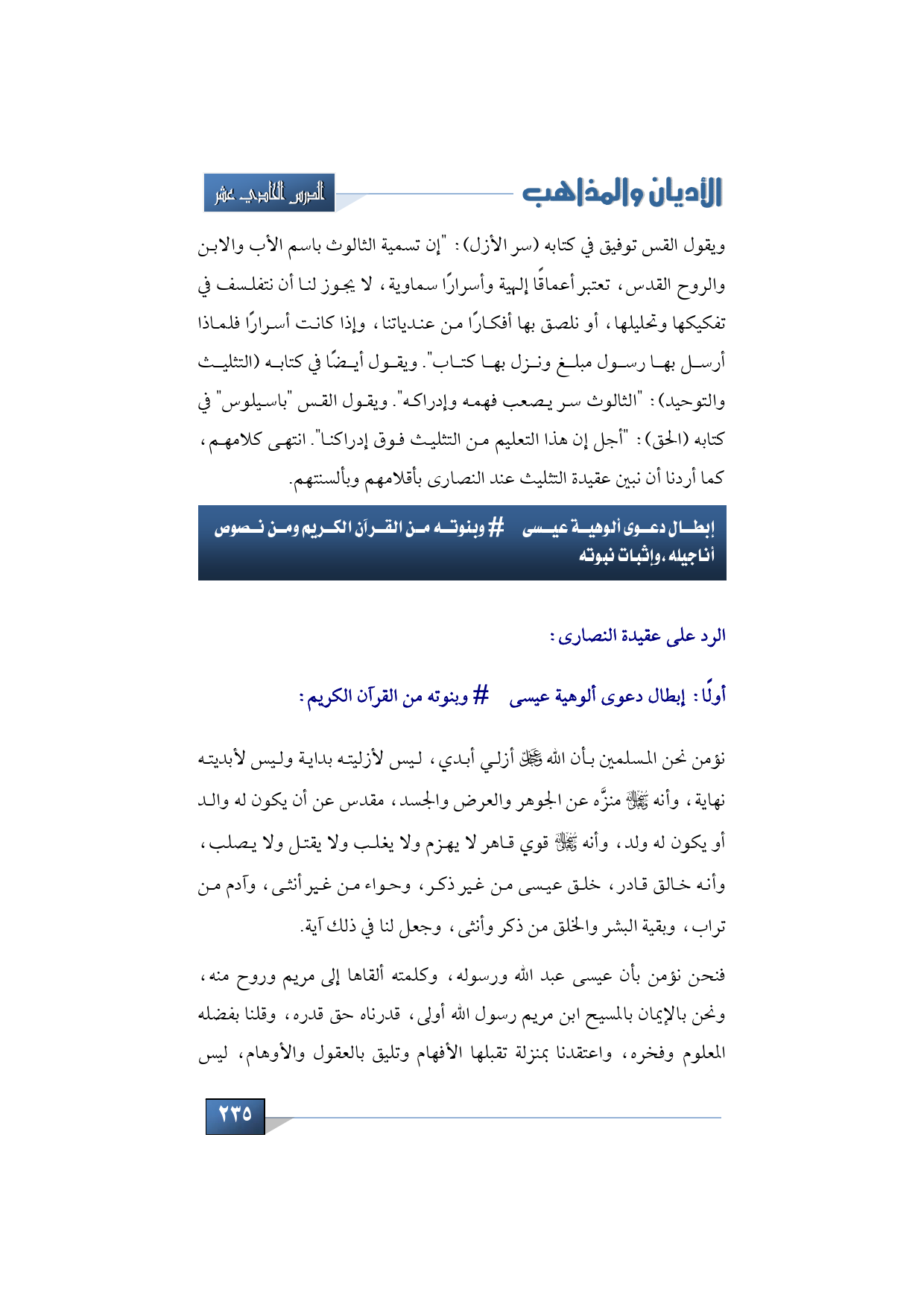 فنحن نؤمن بأن عيسى عبد الله ورسوله، وكلمته ألقاها إلى مريم وروح منه، ونحن بالإيمان بالمسيح ابن مريم رسول الله أولى، قدرناه حق قدره، وقلنا بفضله المعلوم وفخره، واعتقدنا بمنزلة تقبلها الأفهام وتليق بالعقول والأوهام، ليس