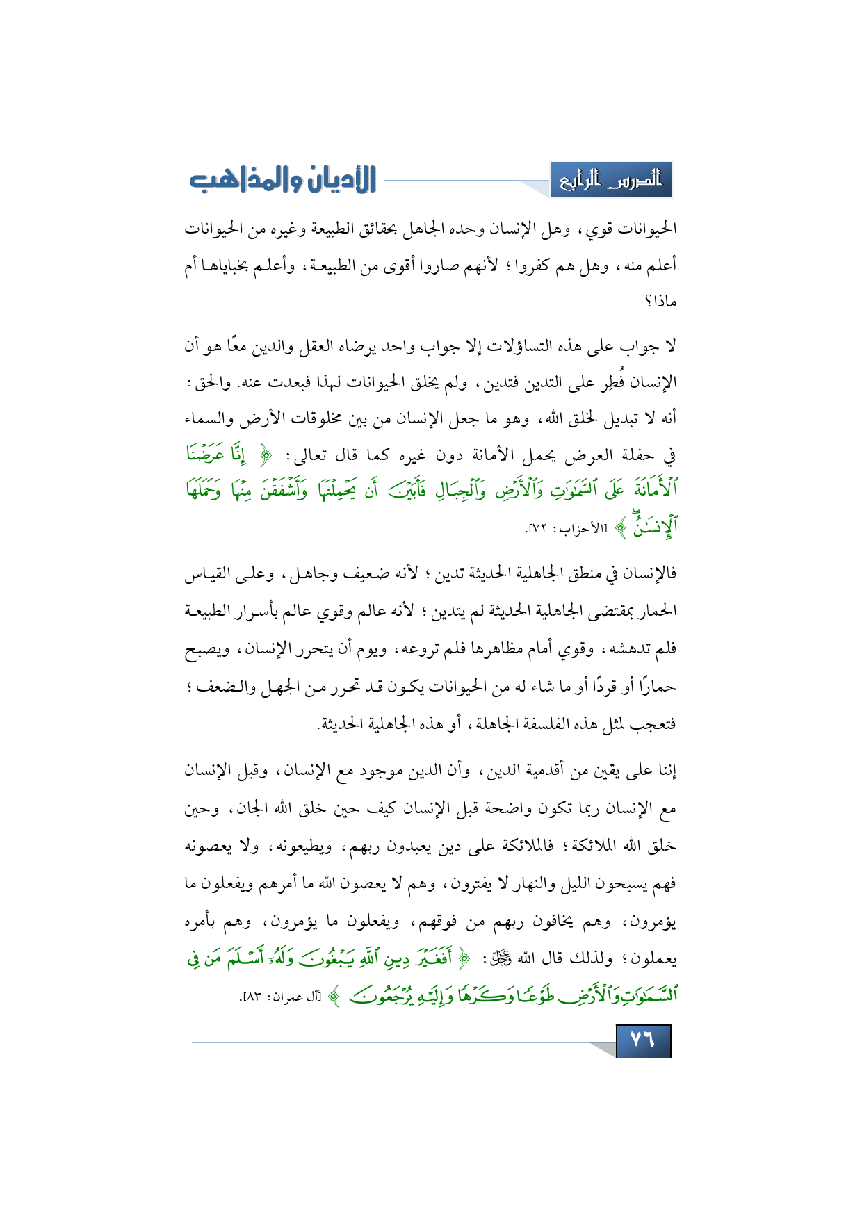 الحيوانات قوي، وهل الإنسان وحده الجاهل بحقائق الطبيعة وغيره من الحيوانات أعلم منه، وهل هم كفروا؛ لأنهم صاروا أقوى من الطبيعة، وأعلم بخباياها أم ماذا؟