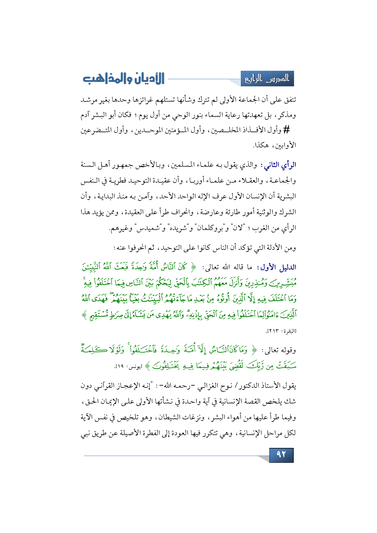 والأدلة التي تؤكد أن الناس كانوا على التوحيد، ثم انحرفوا عنه ما قاله الله تعالى: {كَانَ النَّاسُ أُمَّةً وَاحِدَةً فَبَعَثَ اللَّهُ النَّبِيِّينَ مُبَشِّرِينَ وَمُنْذِرِينَ وَأَنْزَلَ مَعَهُمُ الْكِتَابَ بِالْحَقِّ لِيَحْكُمَ بَيْنَ النَّاسِ فِيمَا اخْتَلَفُوا فِيهِ وَمَا اخْتَلَفَ فِيهِ إِلَّا الَّذِينَ أُوتُوهُ مِنْ بَعْدِ مَا جَاءَتْهُمُ الْبَيِّنَاتُ بَغْيًا بَيْنَهُمْ فَهَدَى اللَّهُ الَّذِينَ آمَنُوا لِمَا اخْتَلَفُوا فِيهِ مِنَ الْحَقِّ بِإِذْنِهِ وَاللَّهُ يَهْدِي مَنْ يَشَاءُ إِلَى صِرَاطٍ مُسْتَقِيمٍ} (البقرة: 213)، وقوله تعالى: {وَمَا كَانَ النَّاسُ إِلَّا أُمَّةً وَاحِدَةً فَاخْتَلَفُوا وَلَوْلَا كَلِمَةٌ سَبَقَتْ مِنْ رَبِّكَ لَقُضِيَ بَيْنَهُمْ فِيمَا فِيهِ يَخْتَلِفُونَ} (يونس: 19).