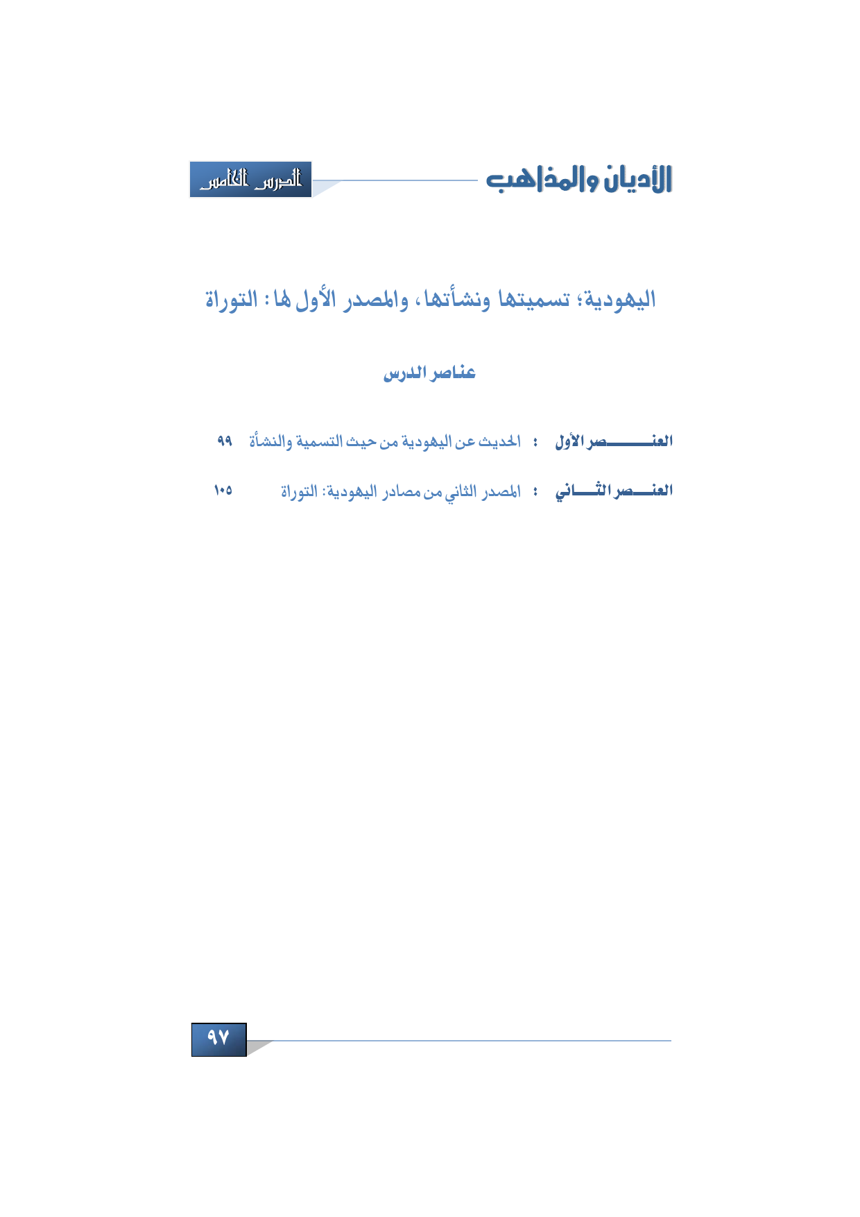 الدرس: 5 اليهودية؛ تسميتها ونشأتها، والمصدر الأول لها: التوراة.